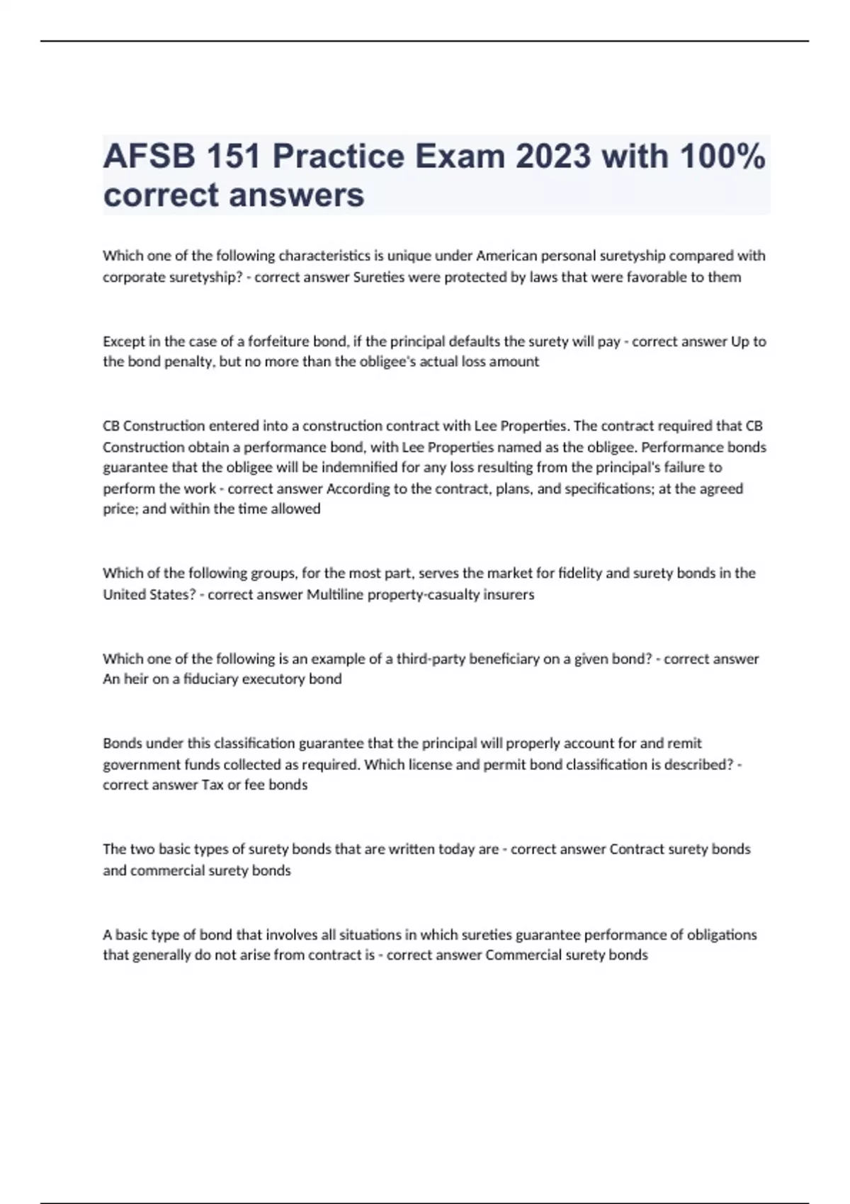 AFSB 151 Practice Exam 2023 with 100% correct answers