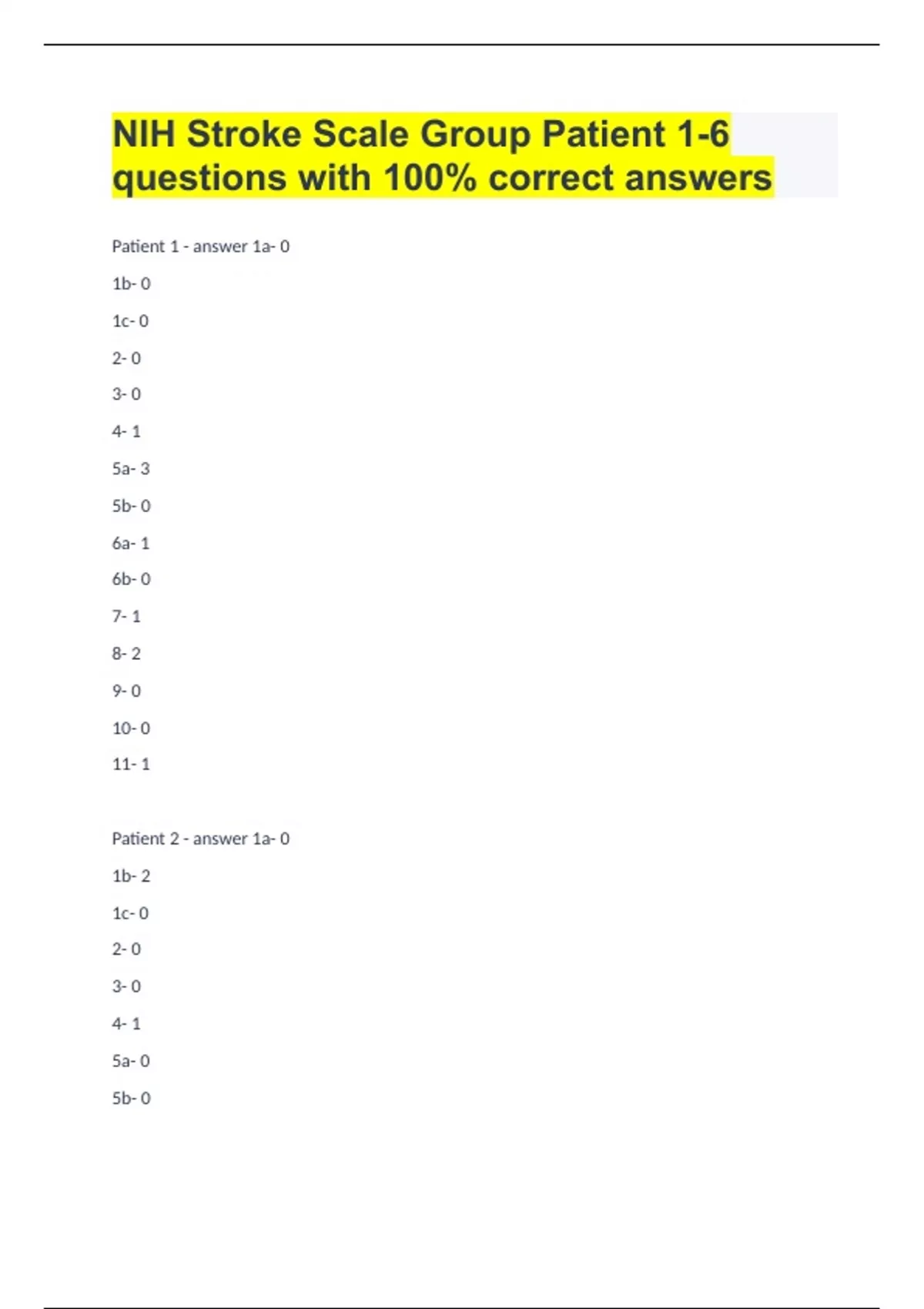 NIH Stroke Scale Group Patient 1-6 questions with 100% correct answers.