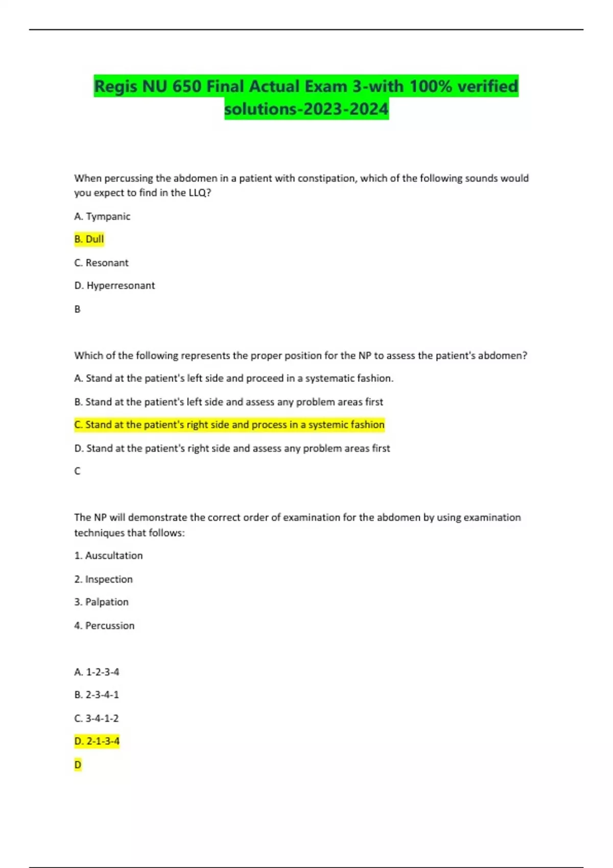 Regis NU 650 Final Actual Exam 3-with 100% verified solutions-