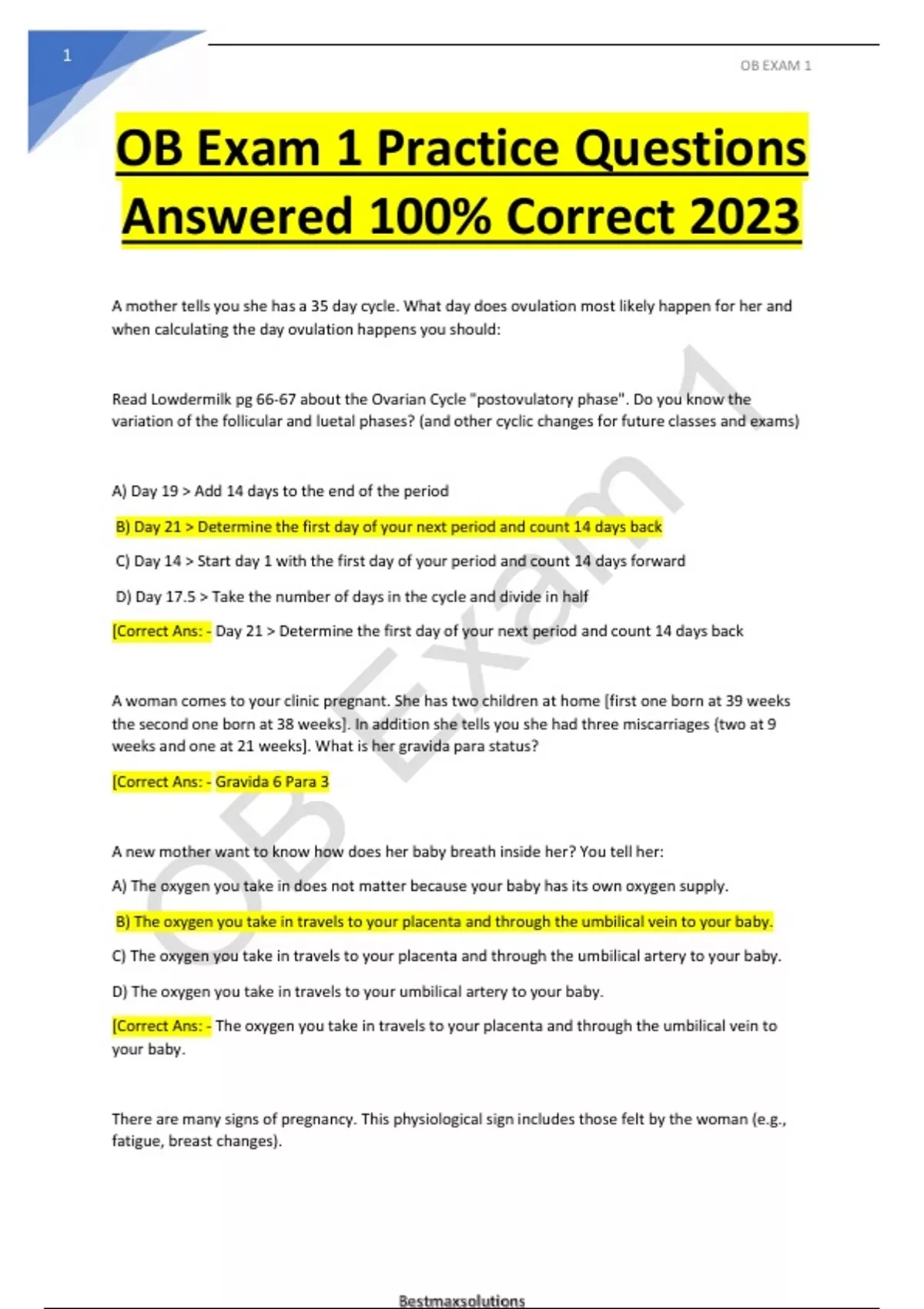 OB Exam 1 Practice Questions Answered 100% Correct 2023