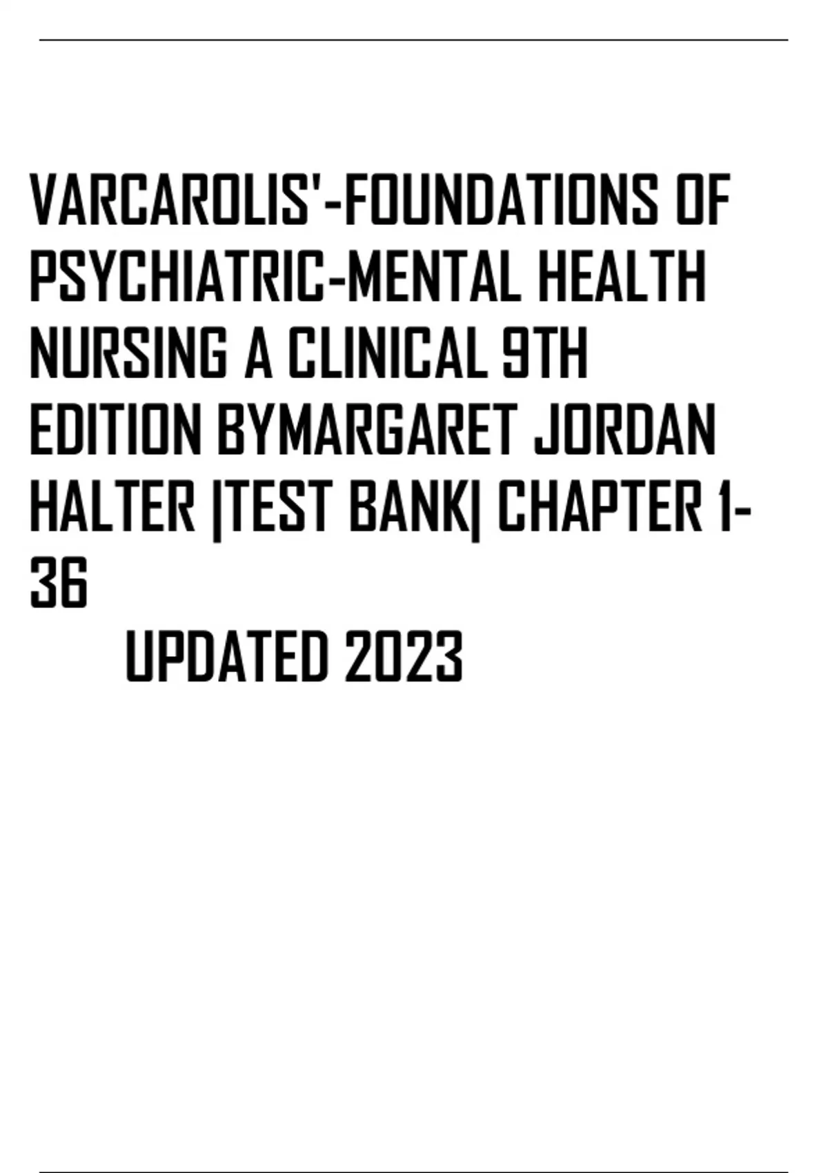 VARCAROLIS'-FOUNDATIONS OF PSYCHIATRIC-MENTAL HEALTH NURSING A CLINICAL 9TH EDITION BY MARGARET JORDAN HALTER |TEST BANK| CHAPTER 1-36 UPDATED 2023