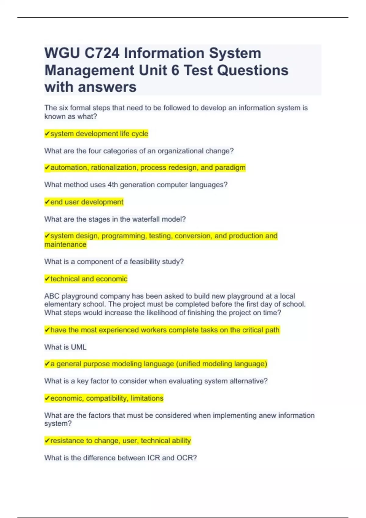 WGU C724 Information System Management Unit 6 Test Questions with answers