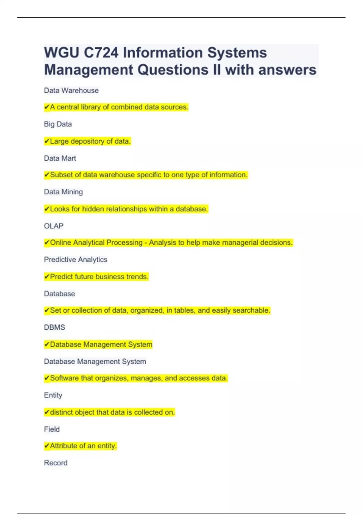 WGU C724 Information Systems Management Questions II with answers