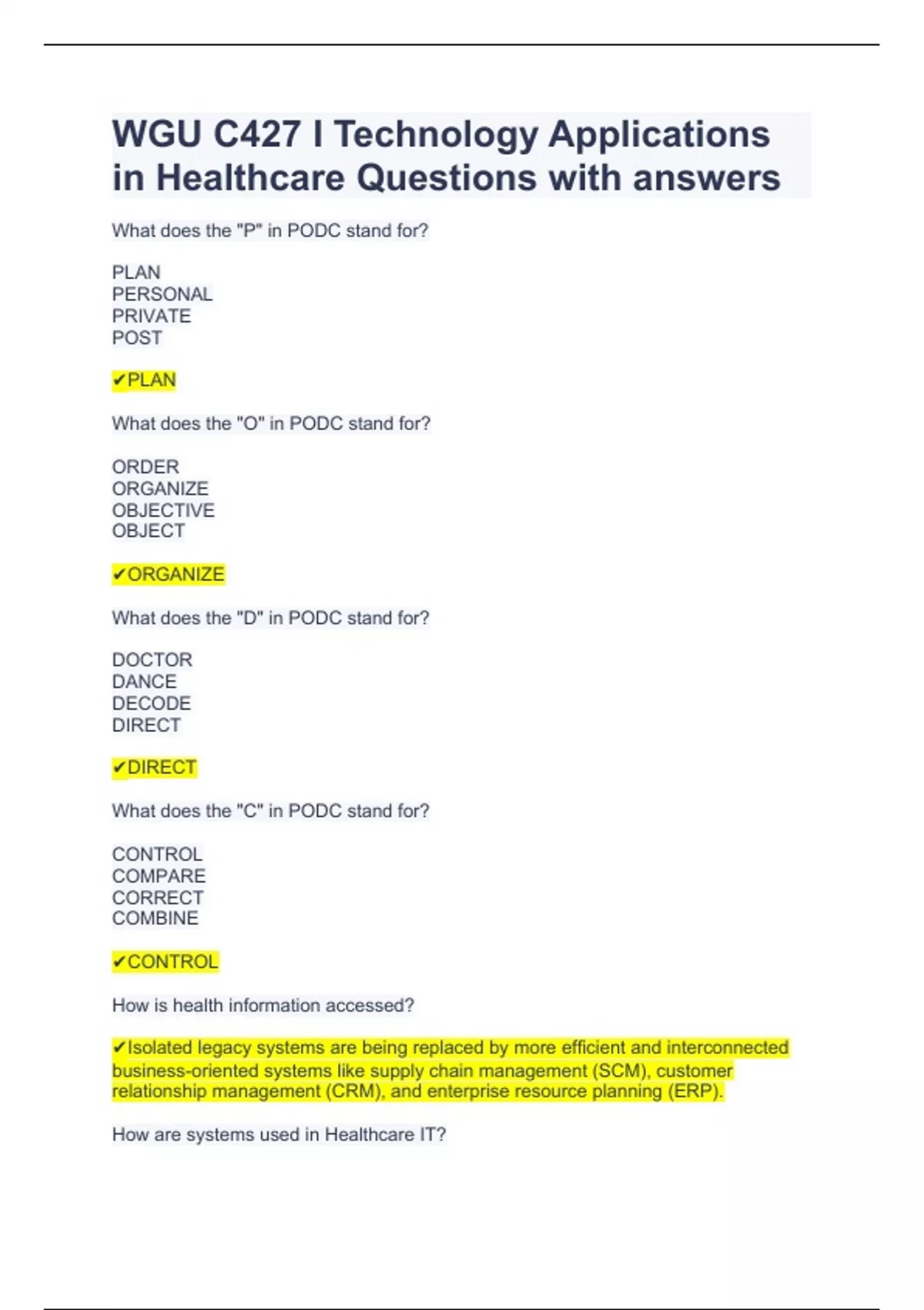 WGU C427 I Technology Applications in Healthcare Questions with answers