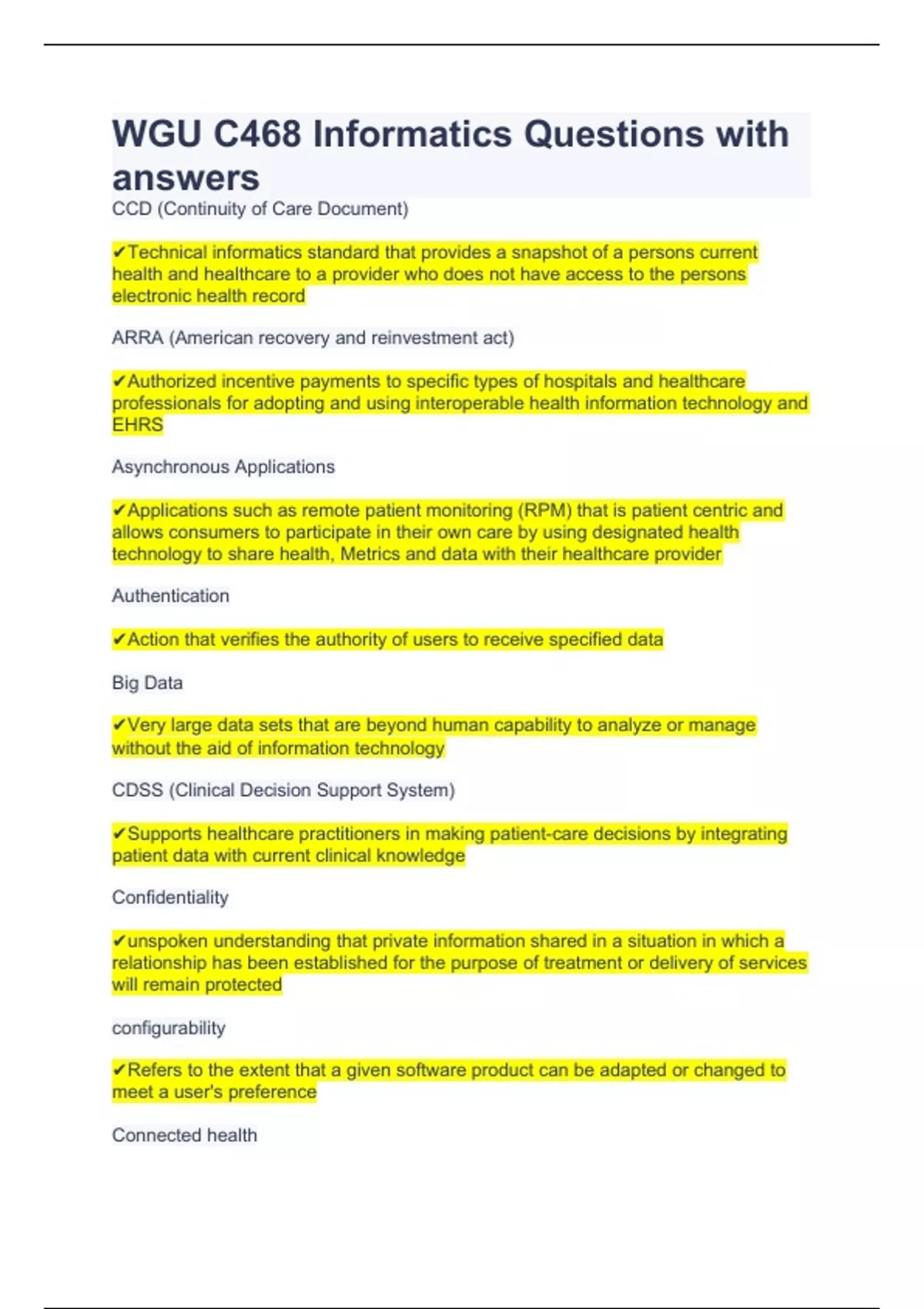 WGU C468 Informatics Questions with answers.