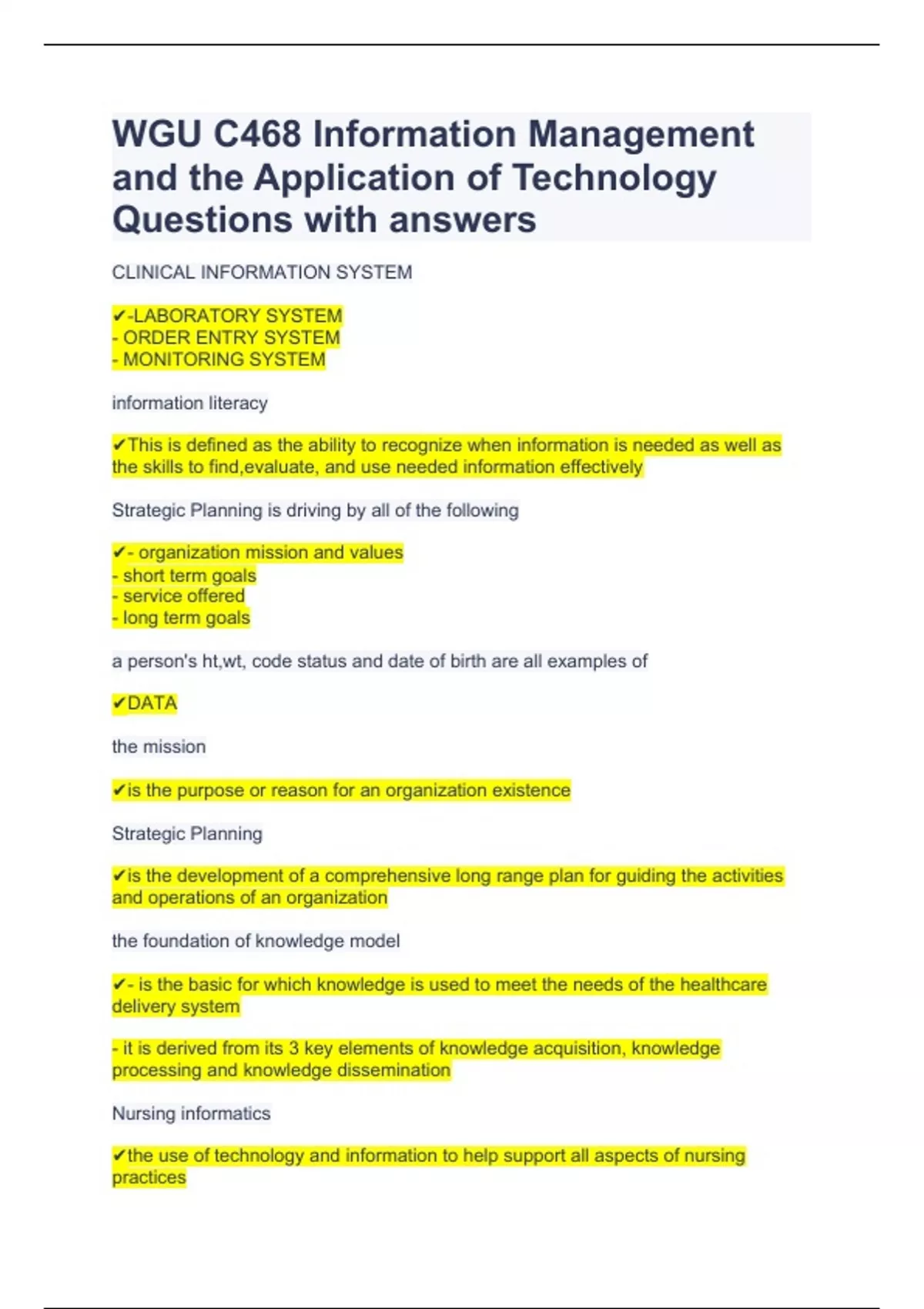 WGU C468 Information Management and the Application of Technology Questions with