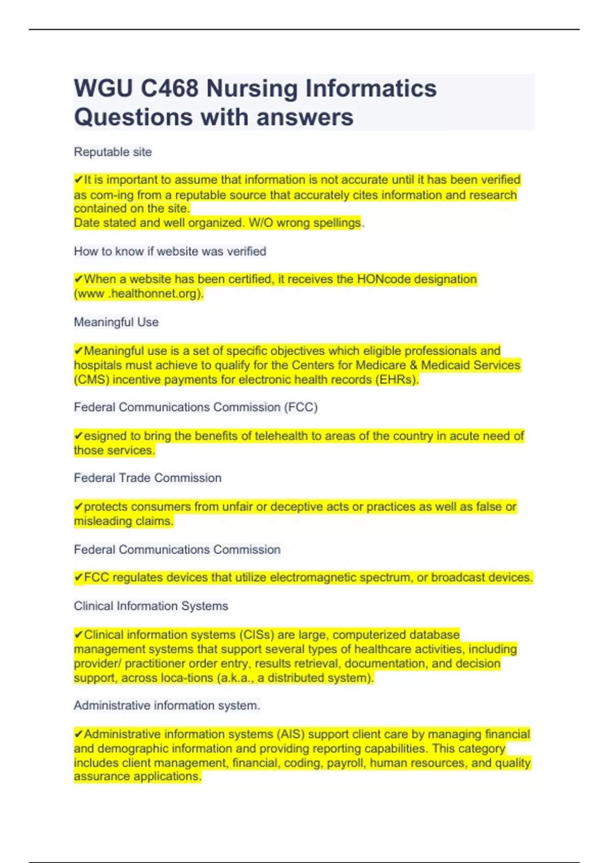 WGU C468 Nursing Informatics Questions with answers
