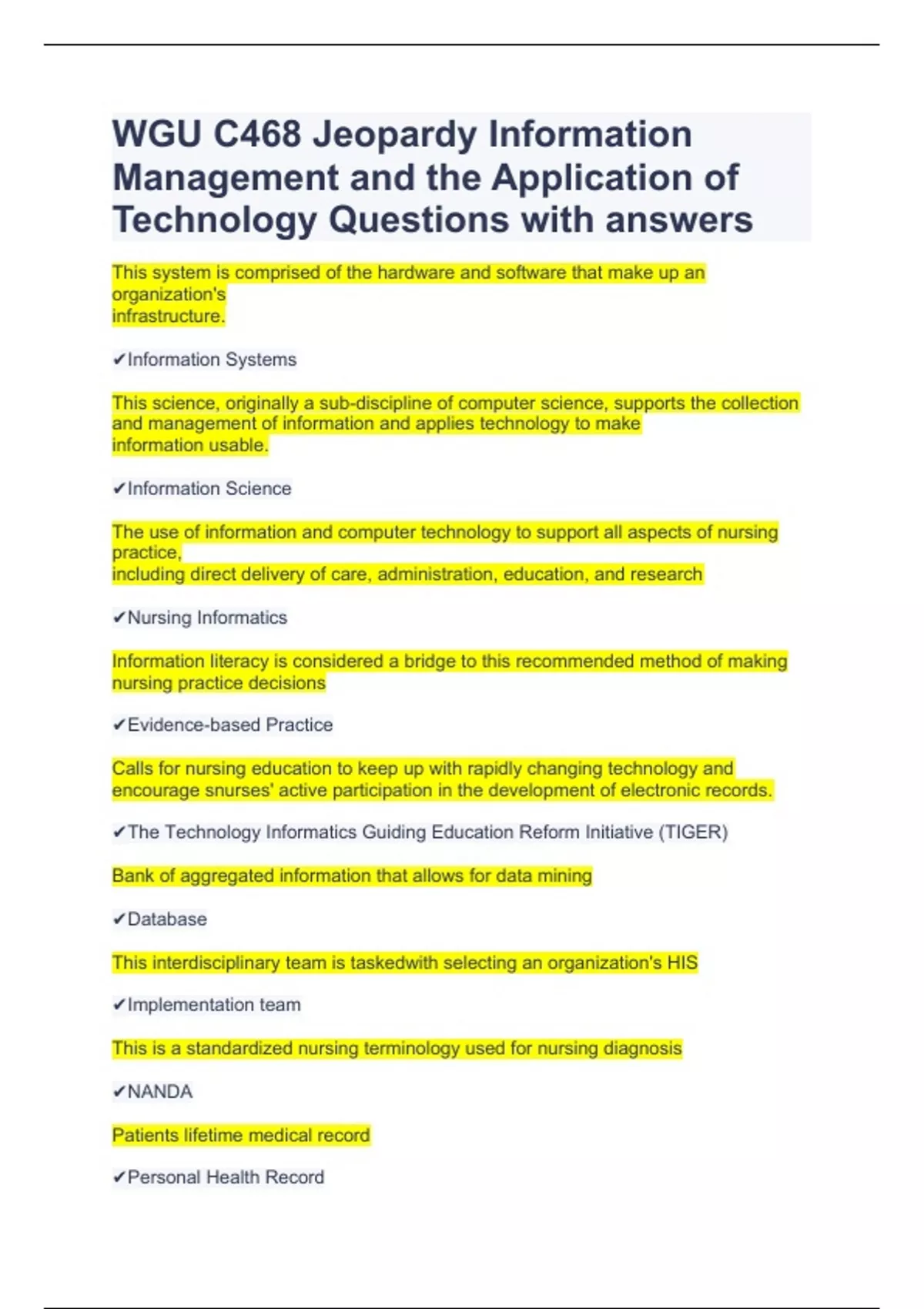 WGU C468 Jeopardy Information Management and the Application of Technology Questions with