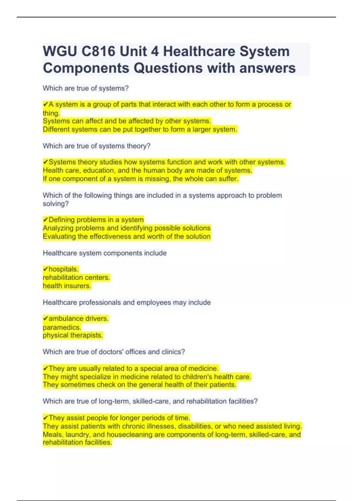 WGU C816 Unit 4 Healthcare System Components Questions with answers