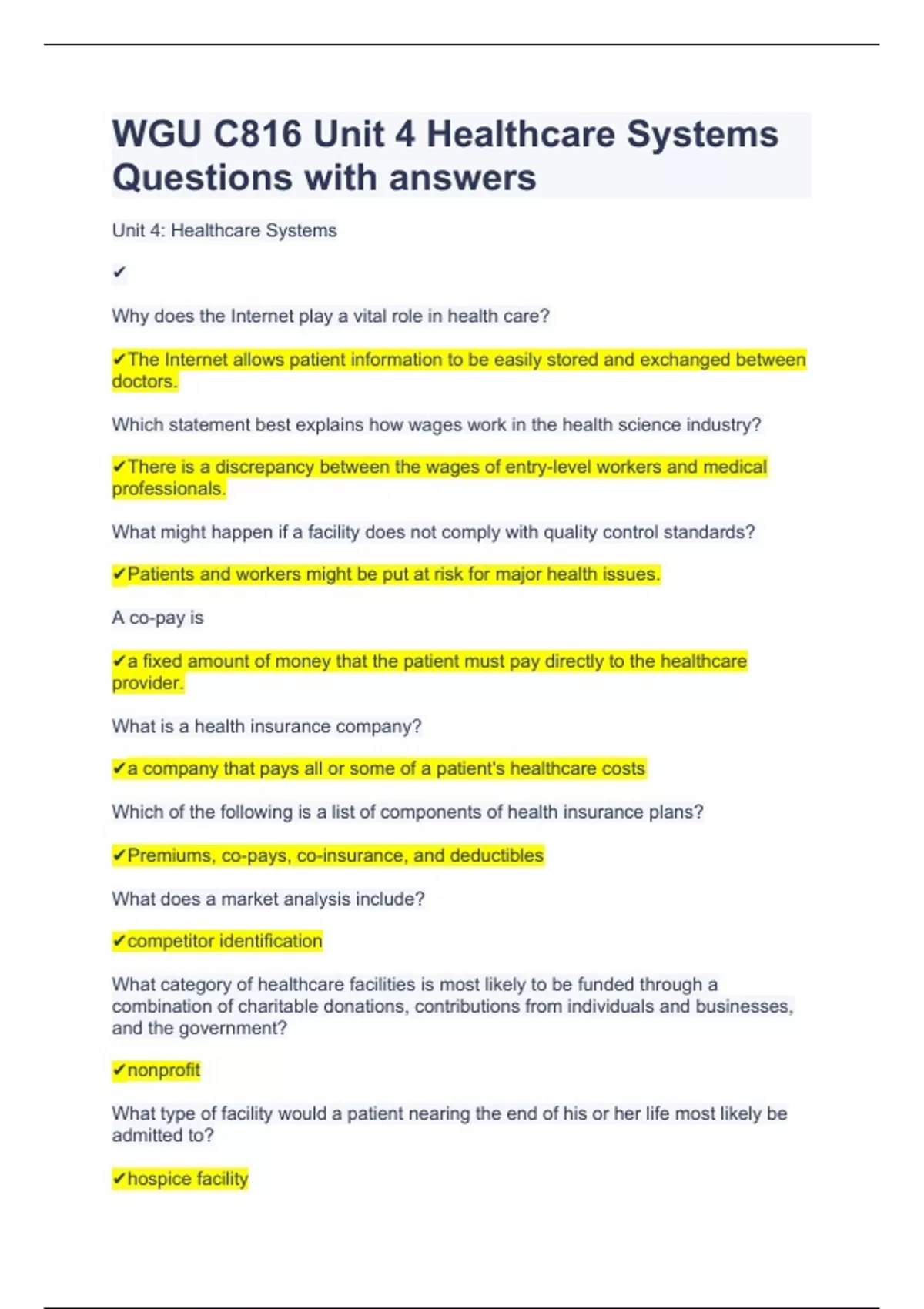 WGU C816 Unit 4 Healthcare Systems Questions with answers