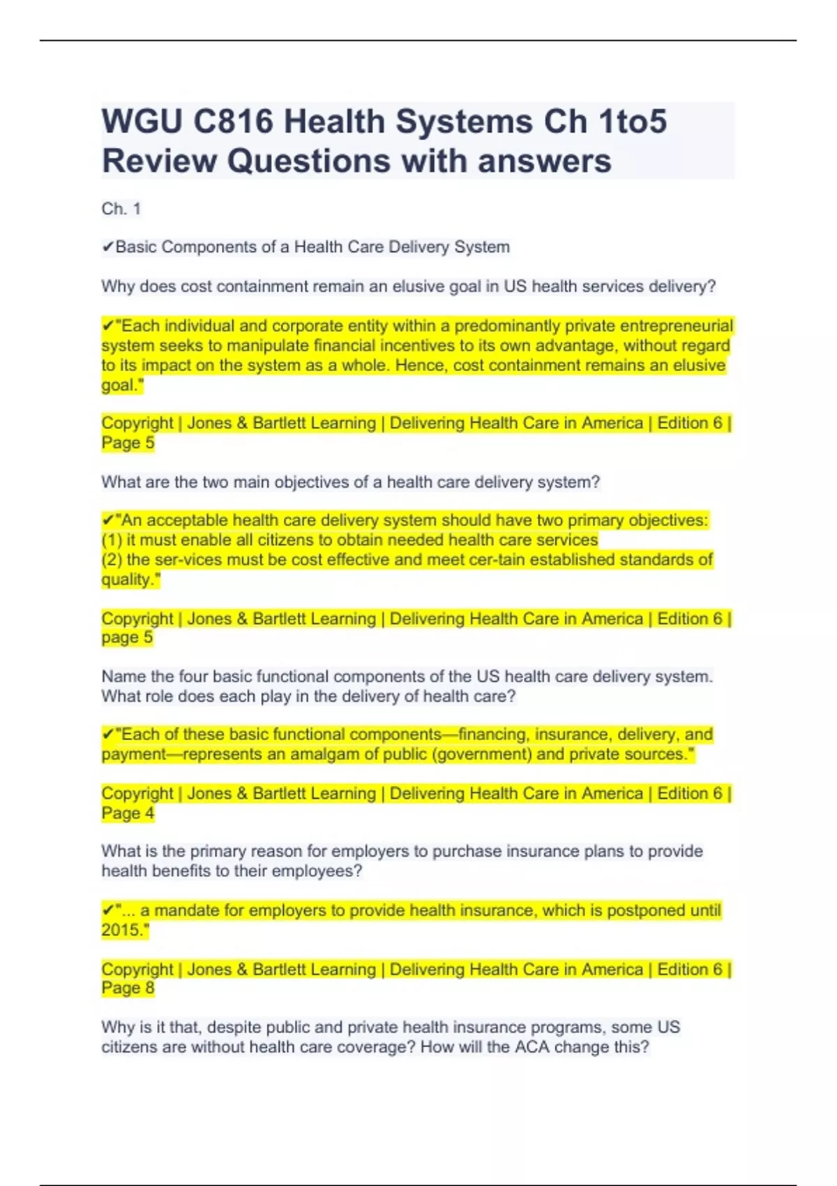 WGU C816 Health Systems Ch 1to5 Review Questions with answers