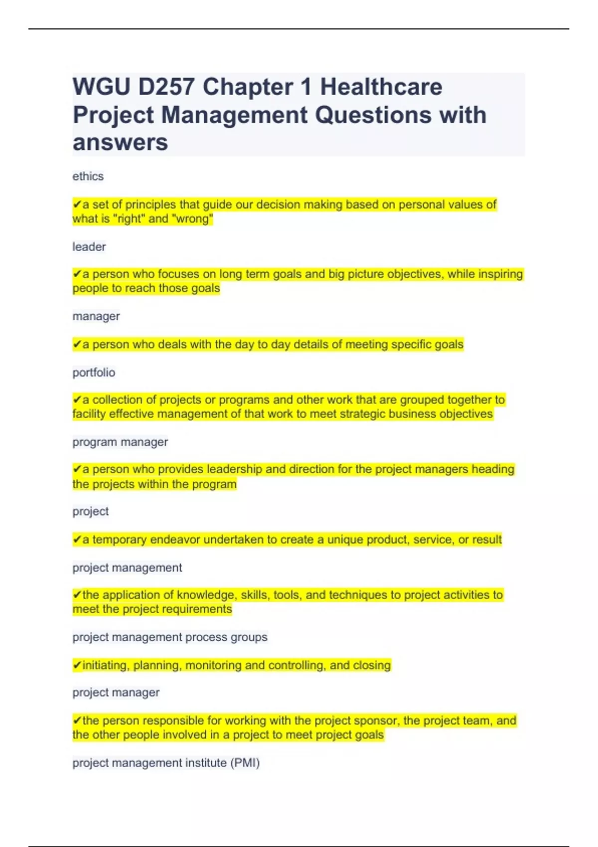 WGU D257 Chapter 1 Healthcare Project Management Questions with answers