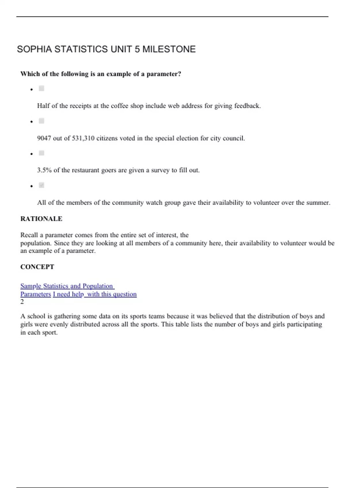 sophia statistics unit 5 milestone