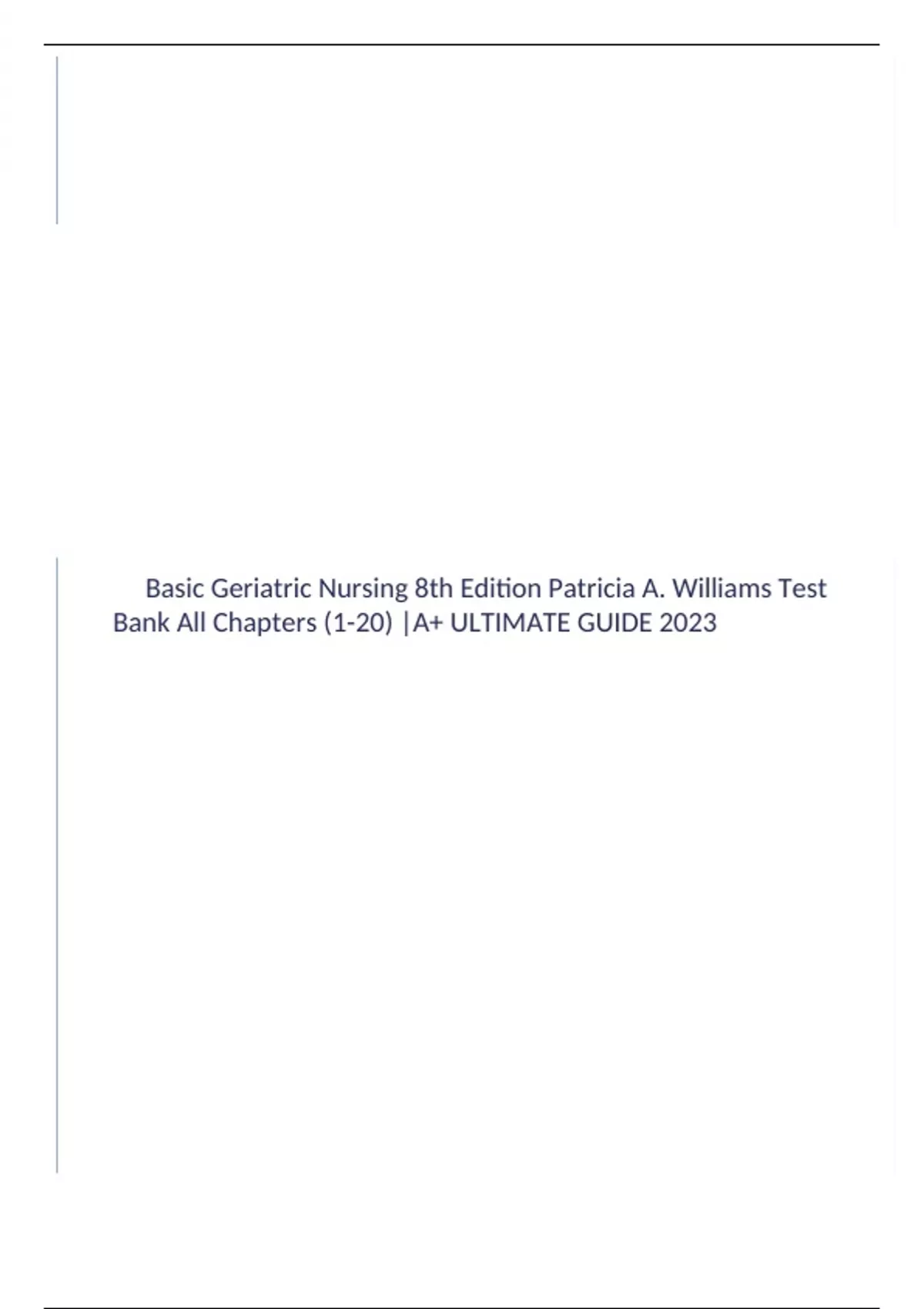 Basic Geriatric Nursing 8th Edition Patricia A. Williams Test Bank All Chapters (1-20) |A+ ULTIMATE GUIDE 2023