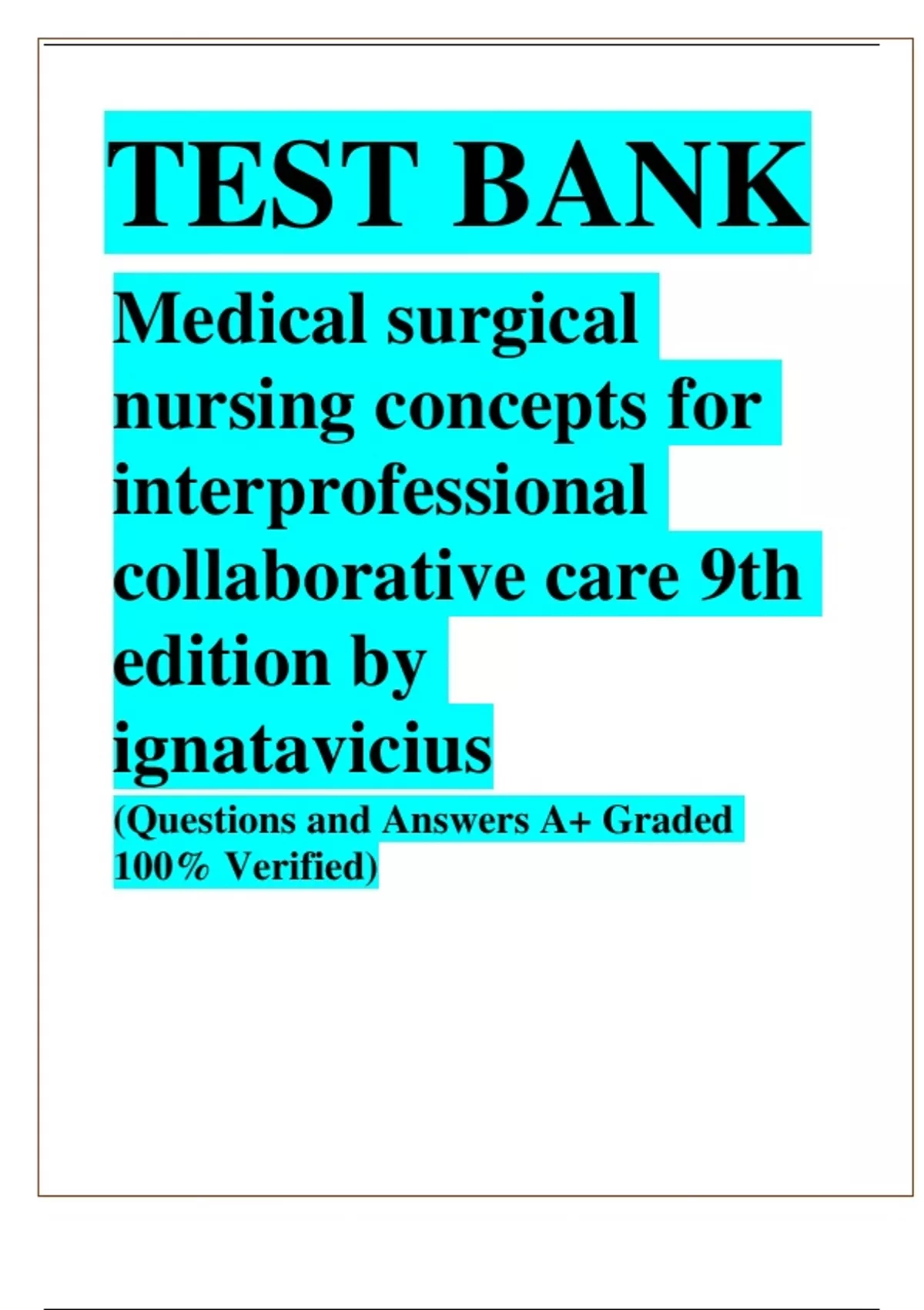 Medical surgical nursing concepts for interprofessional collaborative care 9th edition by ignatavicius (Questions and Answers A+ Graded 100% Verified)
