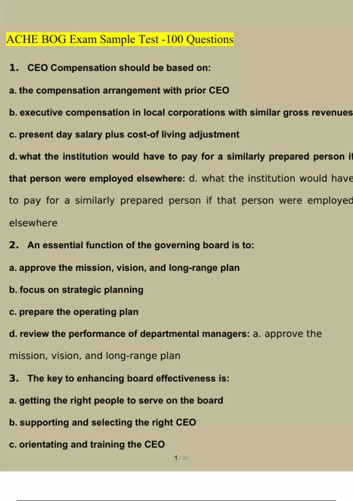 ACHE BOG Exam Sample Test -100 Questions Latest 2023/2024[100% correct answers & explanations]