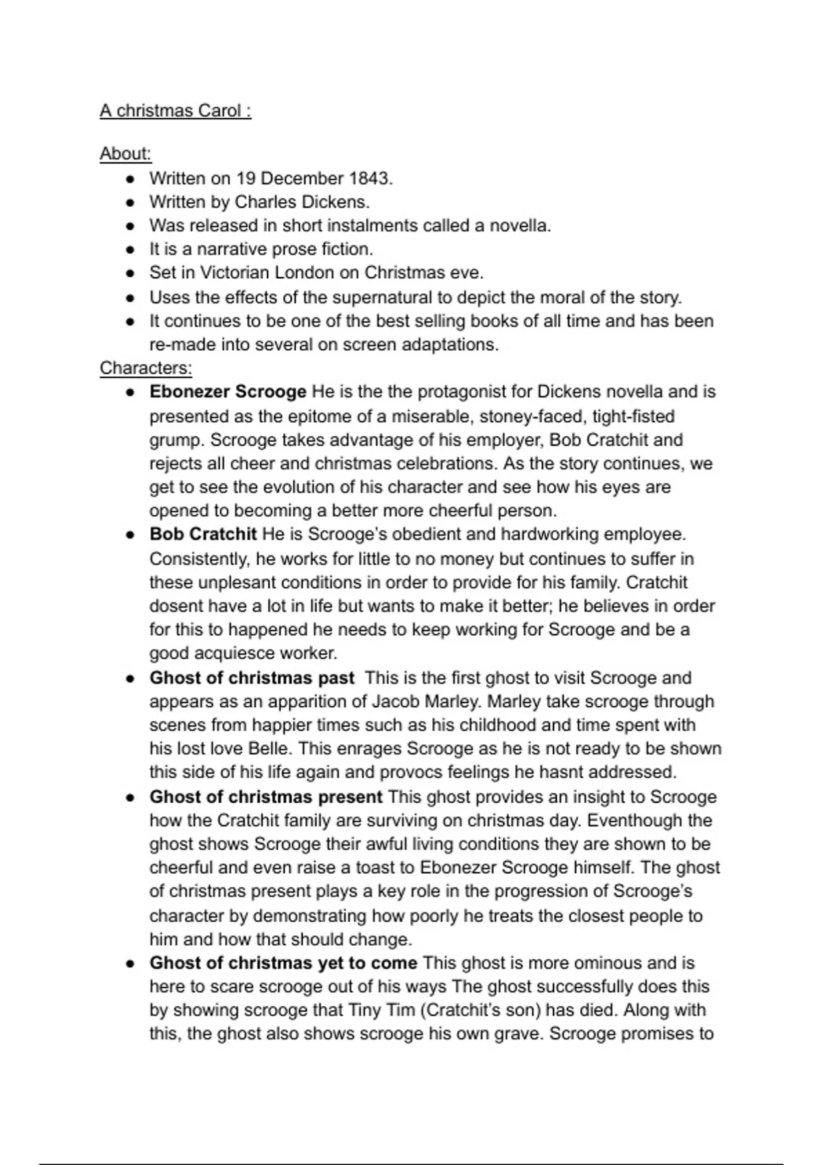 This is a few pages of in-depth A Christmas Carol notes from a former GCSE AQA student