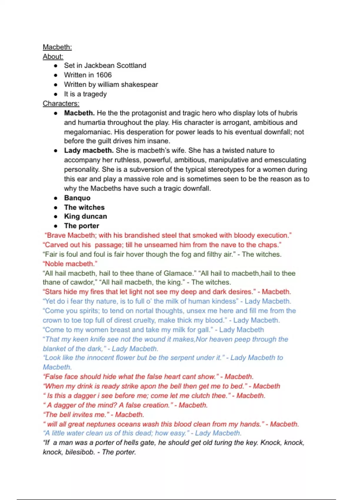 Macbeth GCSE notes