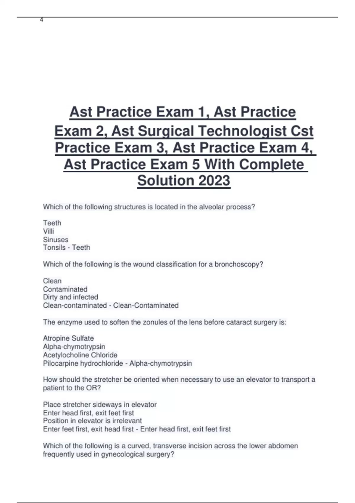 Ast Practice Exam 1, Ast Practice Exam 2, Ast Surgical Technologist Cst Practice Exam 3, Ast Practice Exam 4, Ast Practice Exam 5 With Complete Solution 2023Ast Practice Exam 1, Ast Practice Exam 2, Ast Surgical Technologist Cst Practice Exam 3, Ast Practice Exam 4, Ast Practice Exam 5 With Complete Solution 2023