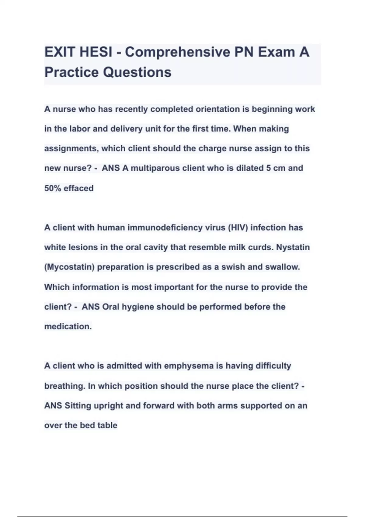 EXIT HESI - Comprehensive PN Exam A Practice Questions & Answers 2023(A+GRADED 100%VERIFIED)