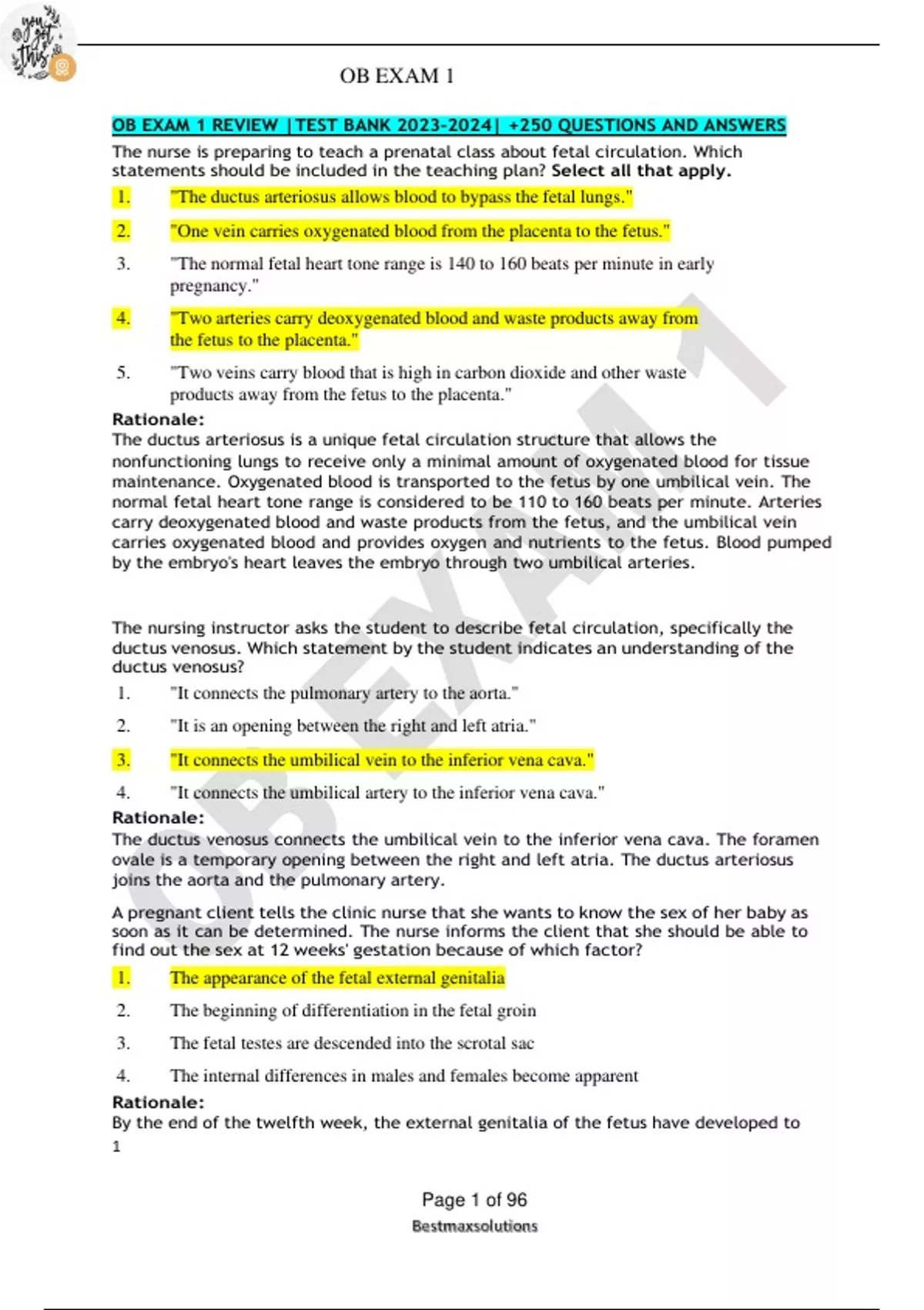 OB EXAM 1 REVIEW |TEST BANK | +250 QUESTIONS AND ANSWERS WITH RATIONALE / GUARANTEE A+ SCORE GUIDE ,OB EXAM 1 REVIEW |TEST BANK | +250 QUESTIONS AND ANSWERS WITH RATIONALE / GUARANTEE A+ SCORE GUIDE ,OB EXAM 1 REVIEW |TEST BANK | +250 QUESTIONS AND ANSWERS WITH RATIONALE / GUARANTEE A+ SCORE GUIDE