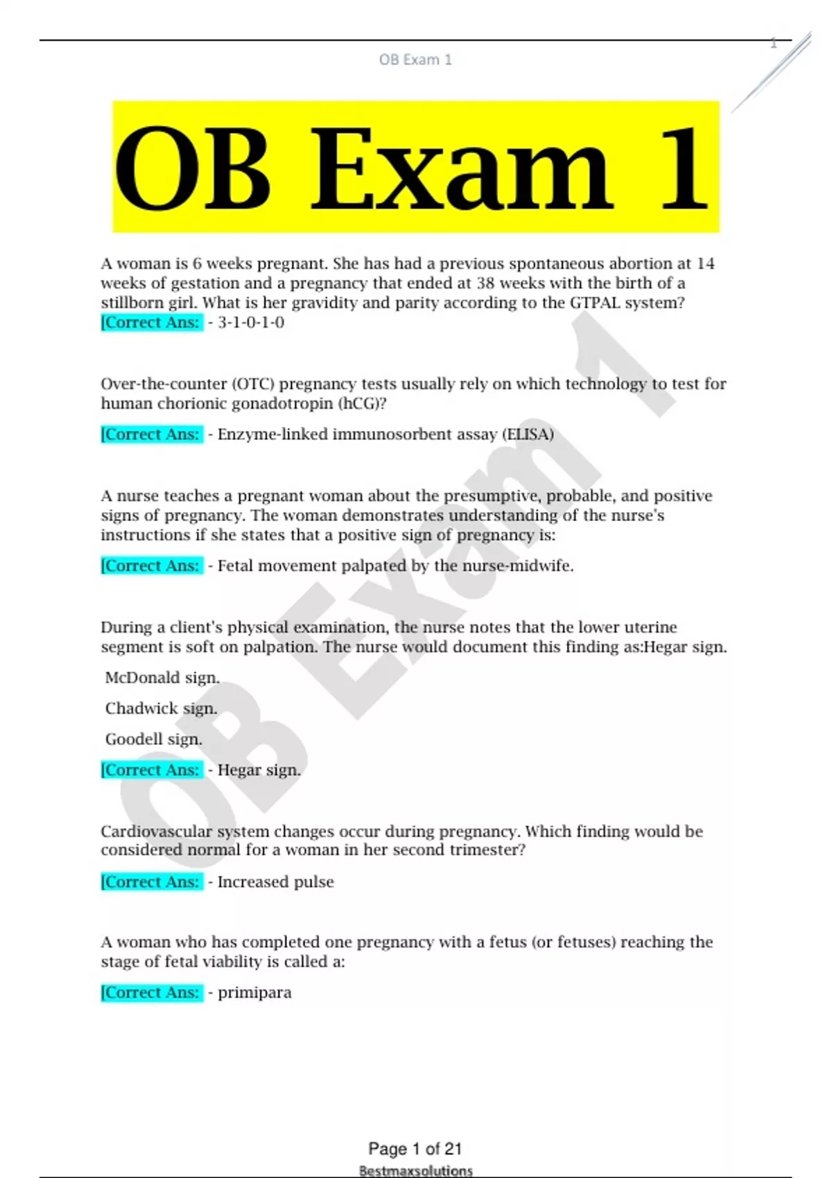 OB Exam 1 Latest Updates Questions 2023 with Correct Answers ,OB Exam 1 Latest Updates Questions 2023 with Correct Answers ,OB Exam 1 Latest Updates Questions 2023 with Correct Answers ,OB Exam 1 Latest Updates Questions 2023 with Correct Answers
