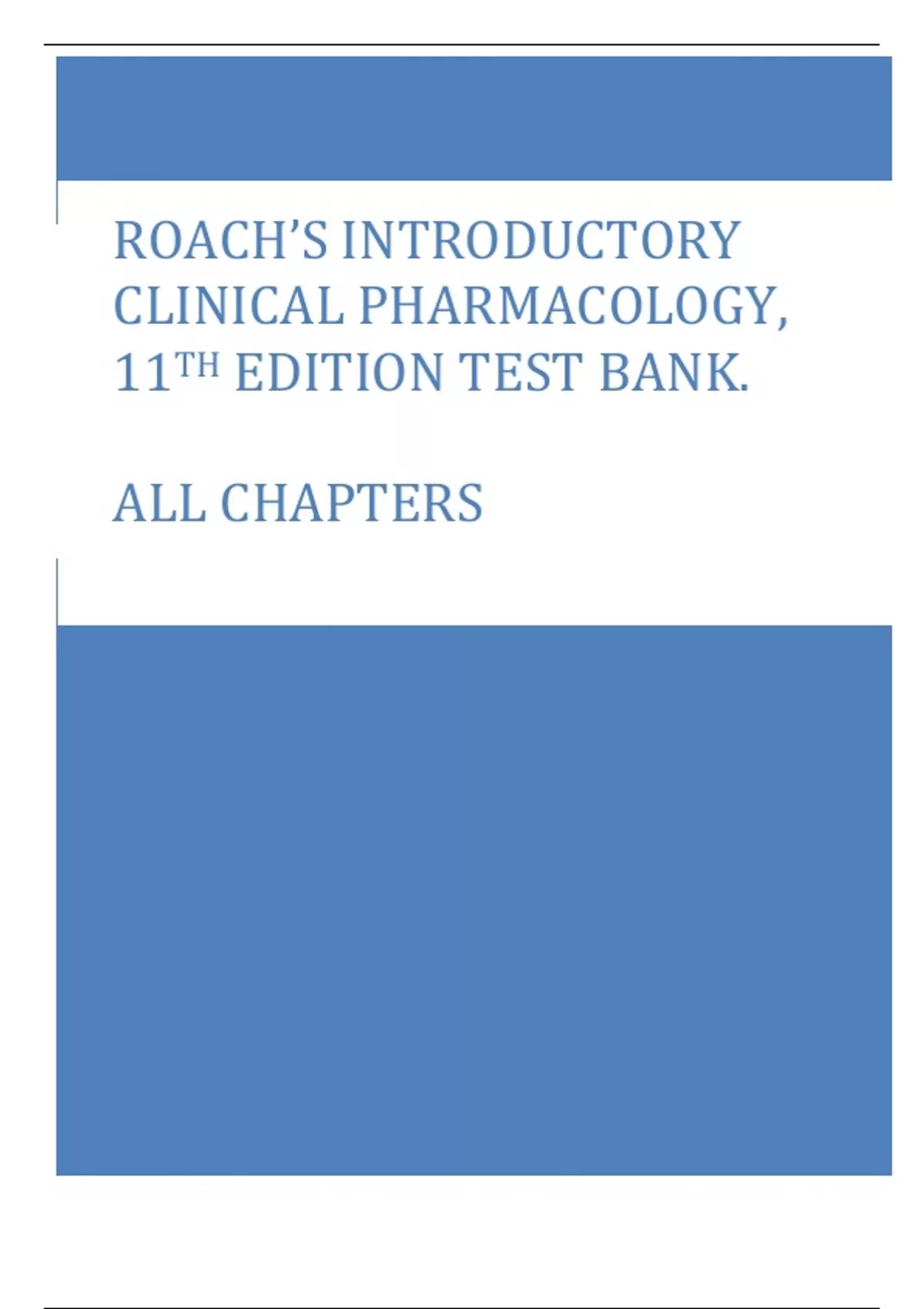 ROACH’S INTRODUCTORY CLINICAL PHARMACOLOGY, 11TH EDITION TEST BANK. ALL CHAPTERS ROACH’S INTRODUCTORY CLINICAL PHARMACOLOGY, 11TH EDITION TEST BANK. ALL CHAPTERS ROACH’S INTRODUCTORY CLINICAL PHARMACOLOGY, 11TH EDITION TEST BANK. ALL CHAPTERS