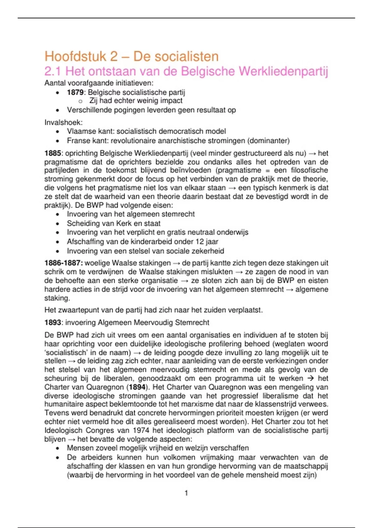 3. 1894: vastleggen van Charter van Quaregnon (=ideologisch programma)