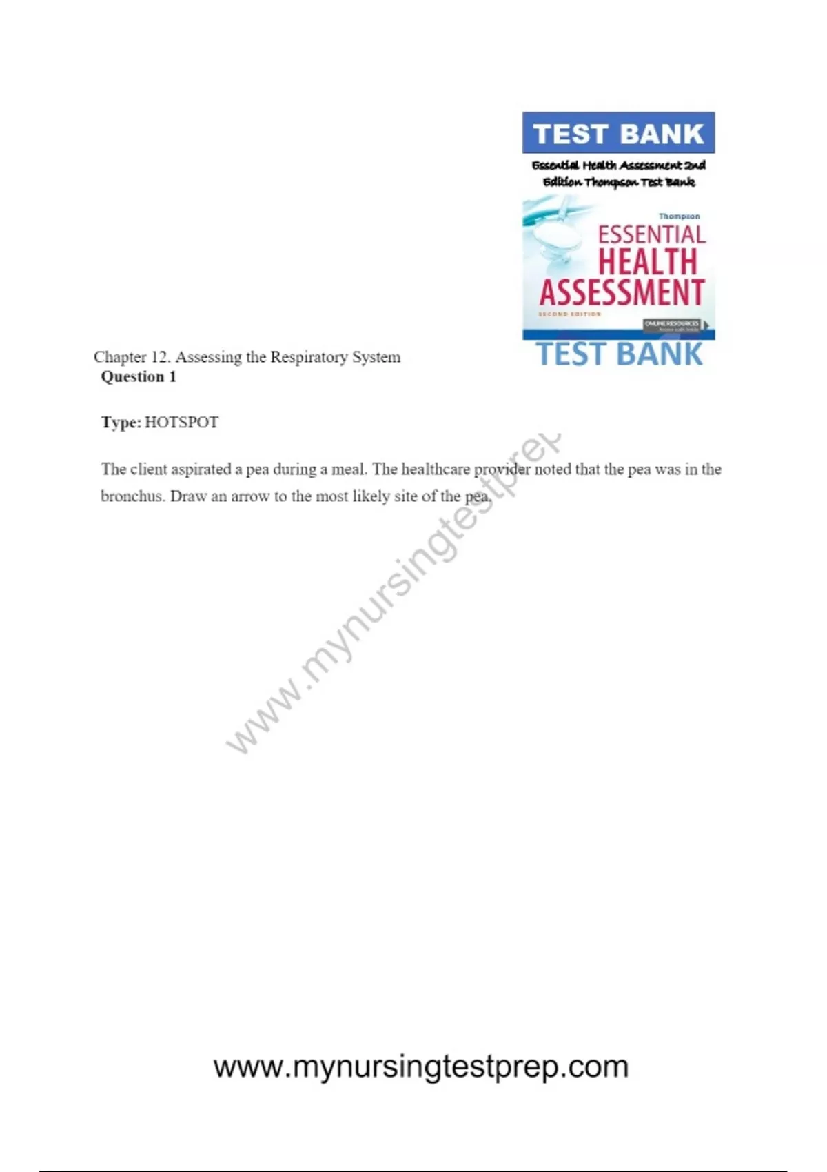 Essential Health Assessment 2nd Edition Thompson Test Bank Chapter 12. Assessing the Respiratory System
