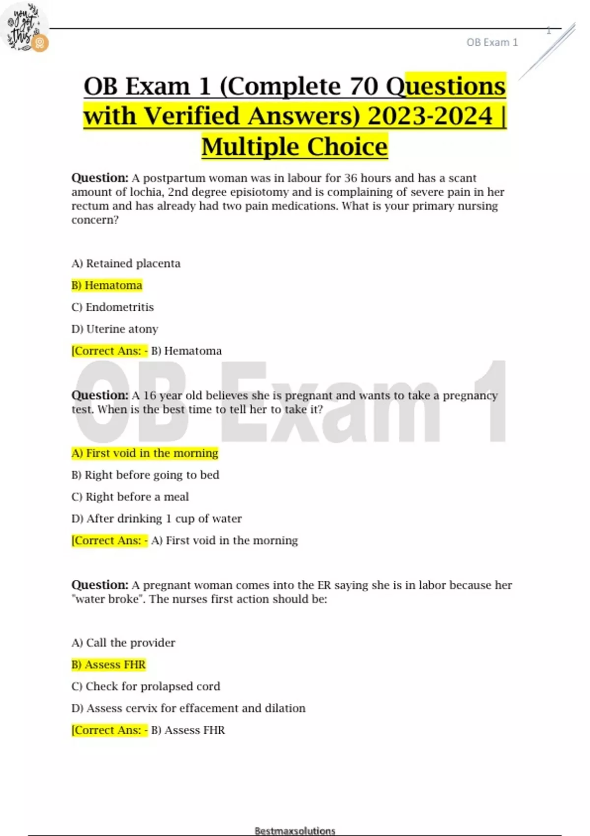 OB Exam 1 (Complete 70 Questions with Verified Answers) | Multiple Choice,OB Exam 1 (Complete 70 Questions with Verified Answers) | Multiple Choice,OB Exam 1 (Complete 70 Questions with Verified Answers) | Multiple Choice