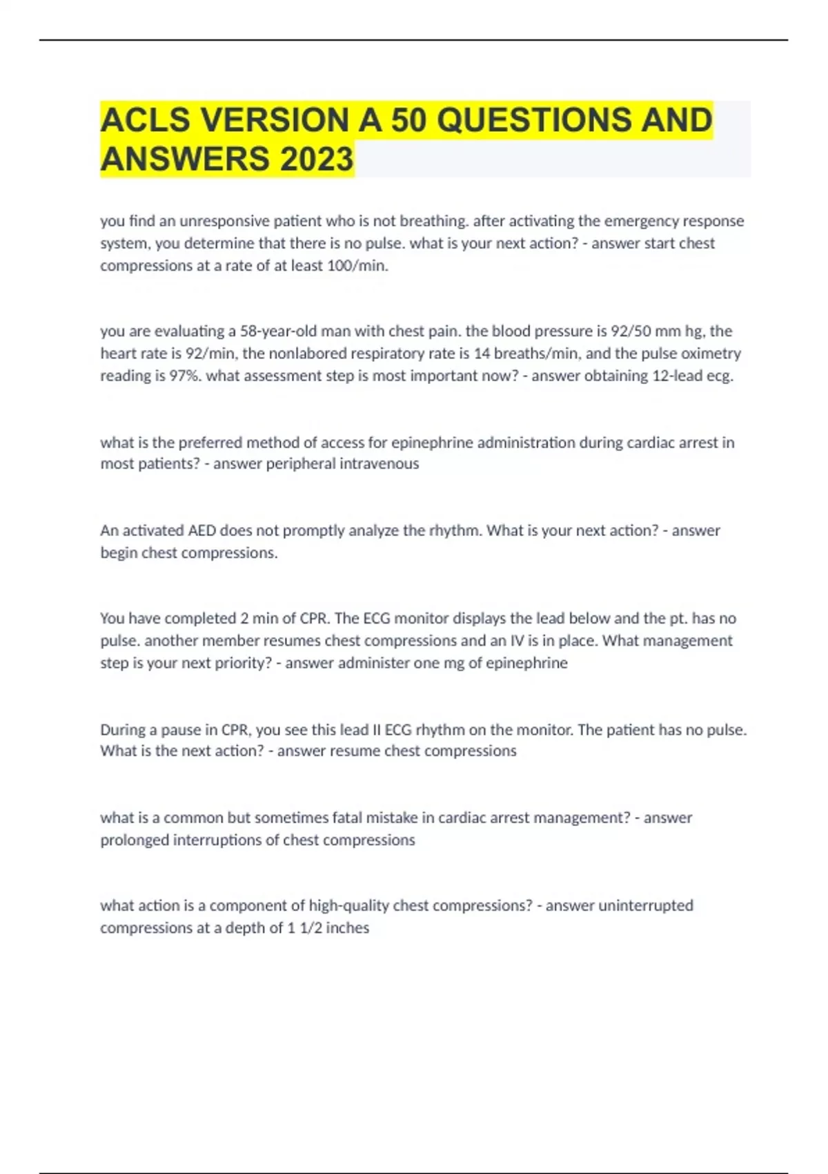 ACLS VERSION A |50 QUESTIONS AND ANSWERS 2023.
