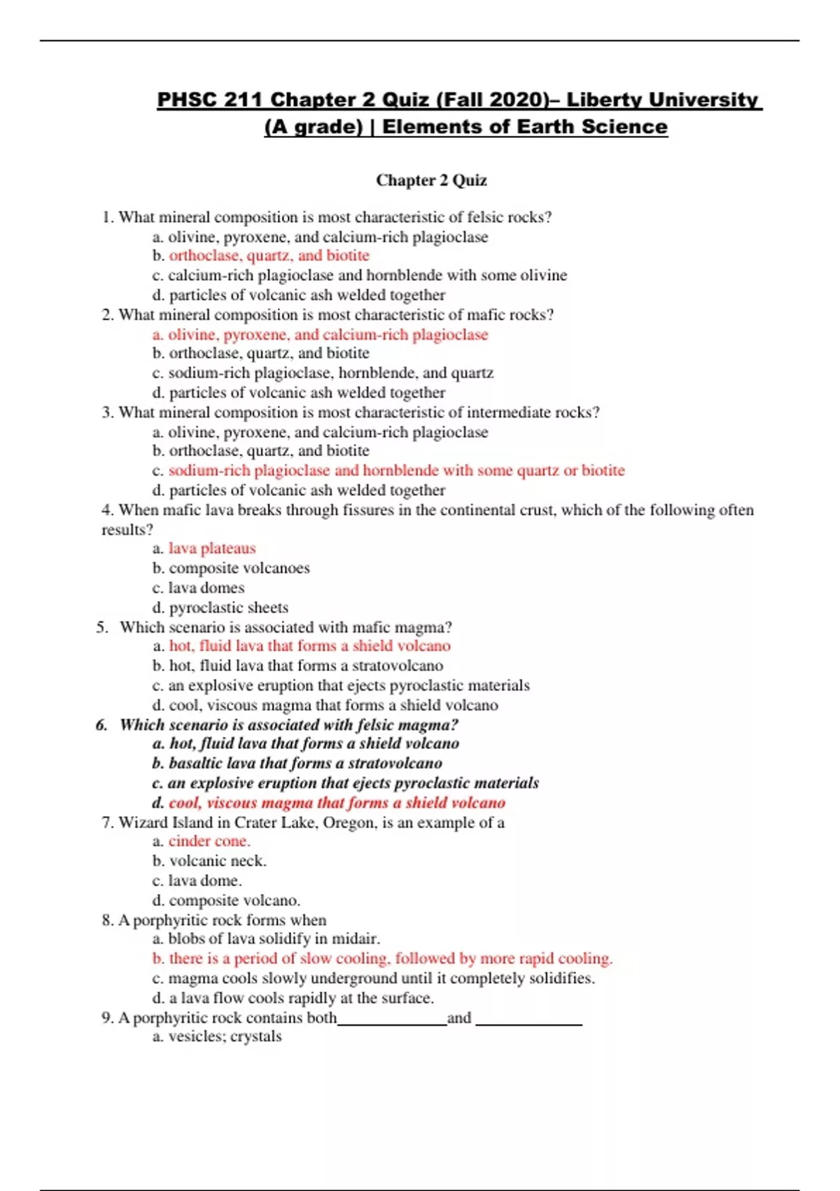 PHSC 211 Chapter 2 Quiz (Fall 2020)– Liberty University (A grade) | Elements of Earth Science
