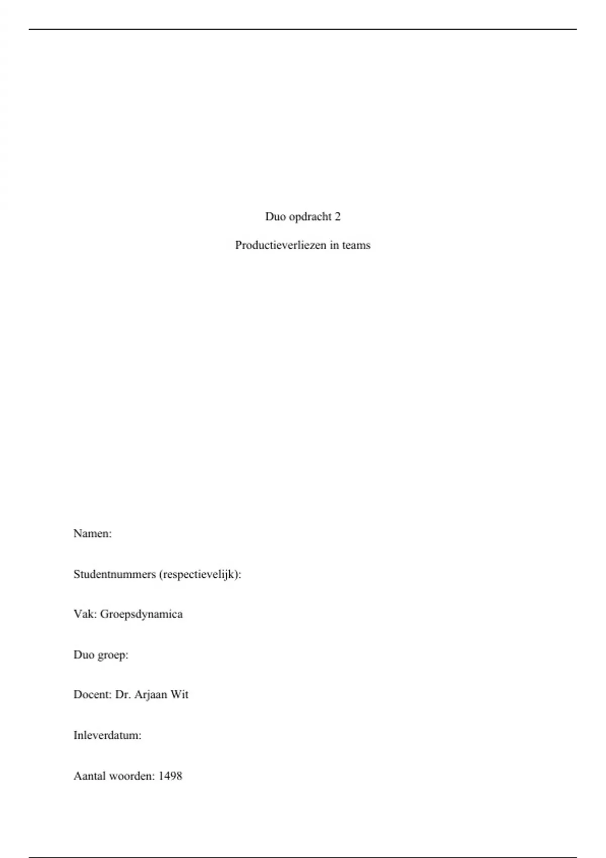 Groepsdynamica opdracht 2, beoordeeld met zeer goed