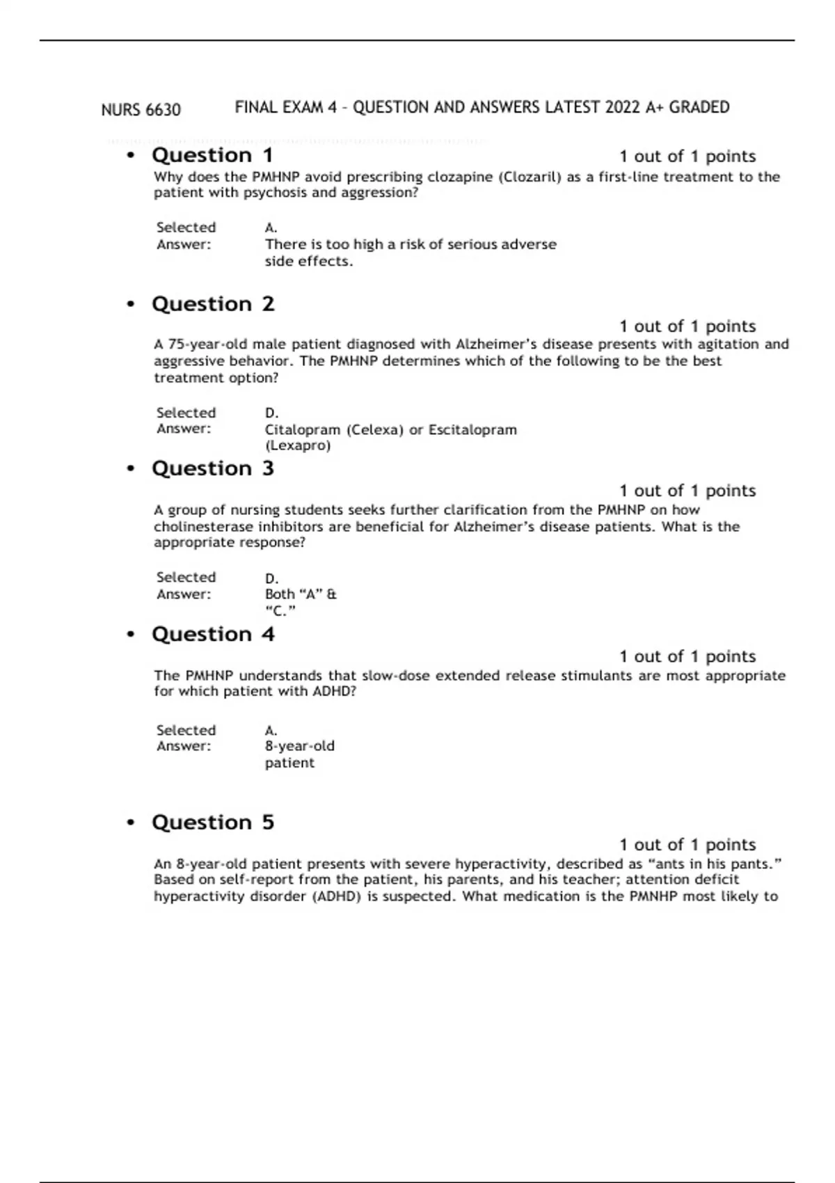 NURS 6630 FINAL EXAM 4 – QUESTION AND ANSWERS LATEST 2022 A+ GRADED