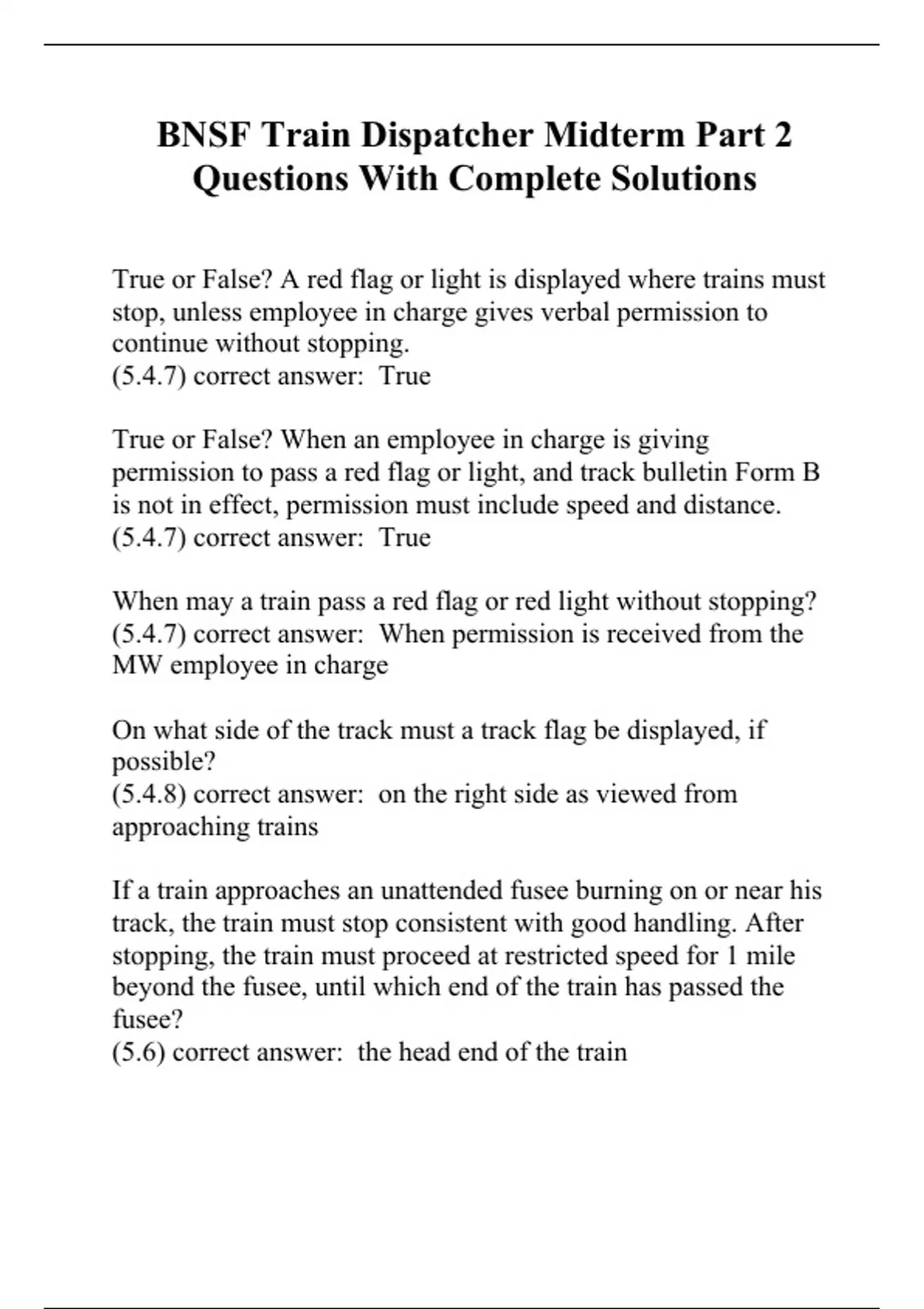 BNSF Train Dispatcher Midterm Part 2 Questions With Complete Solutions