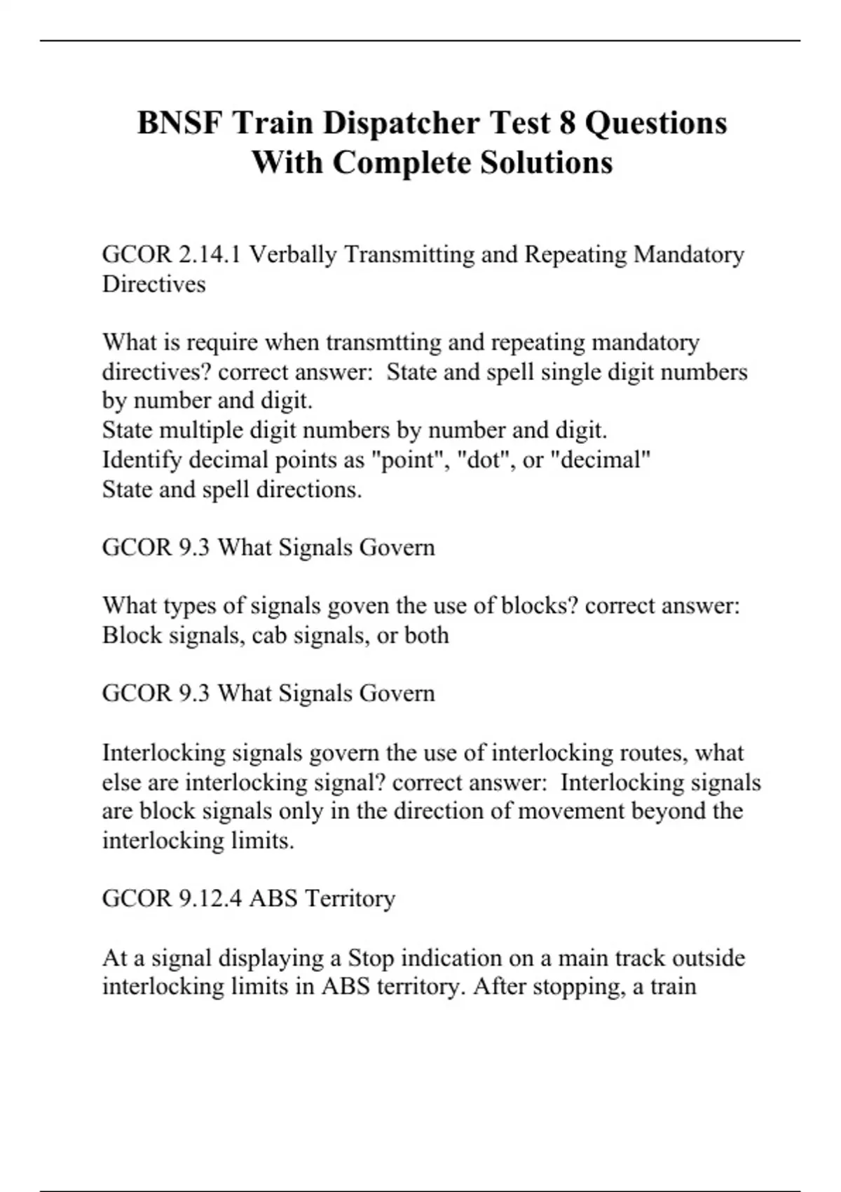 BNSF Train Dispatcher Test 8 Questions With Complete Solutions