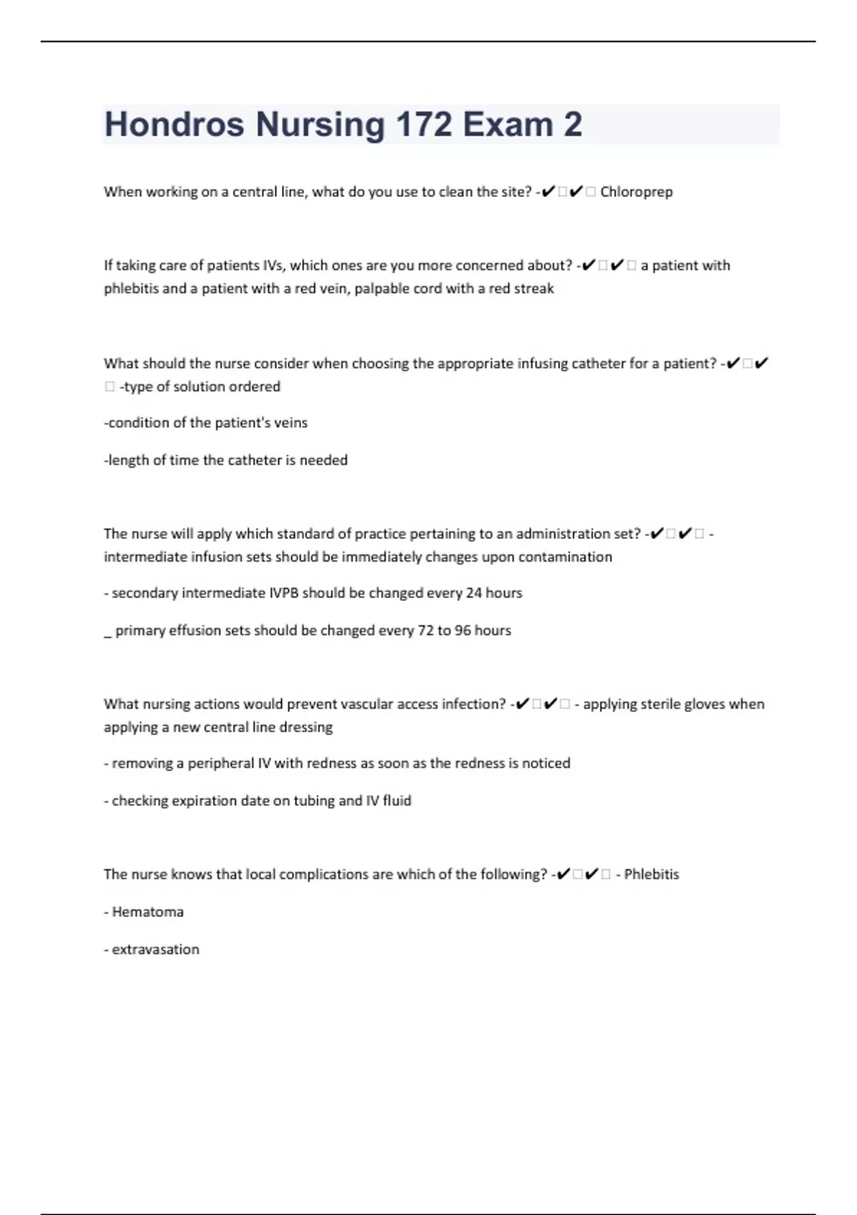 Hondros Nursing 172 Exam 2|60 Questions And Answers