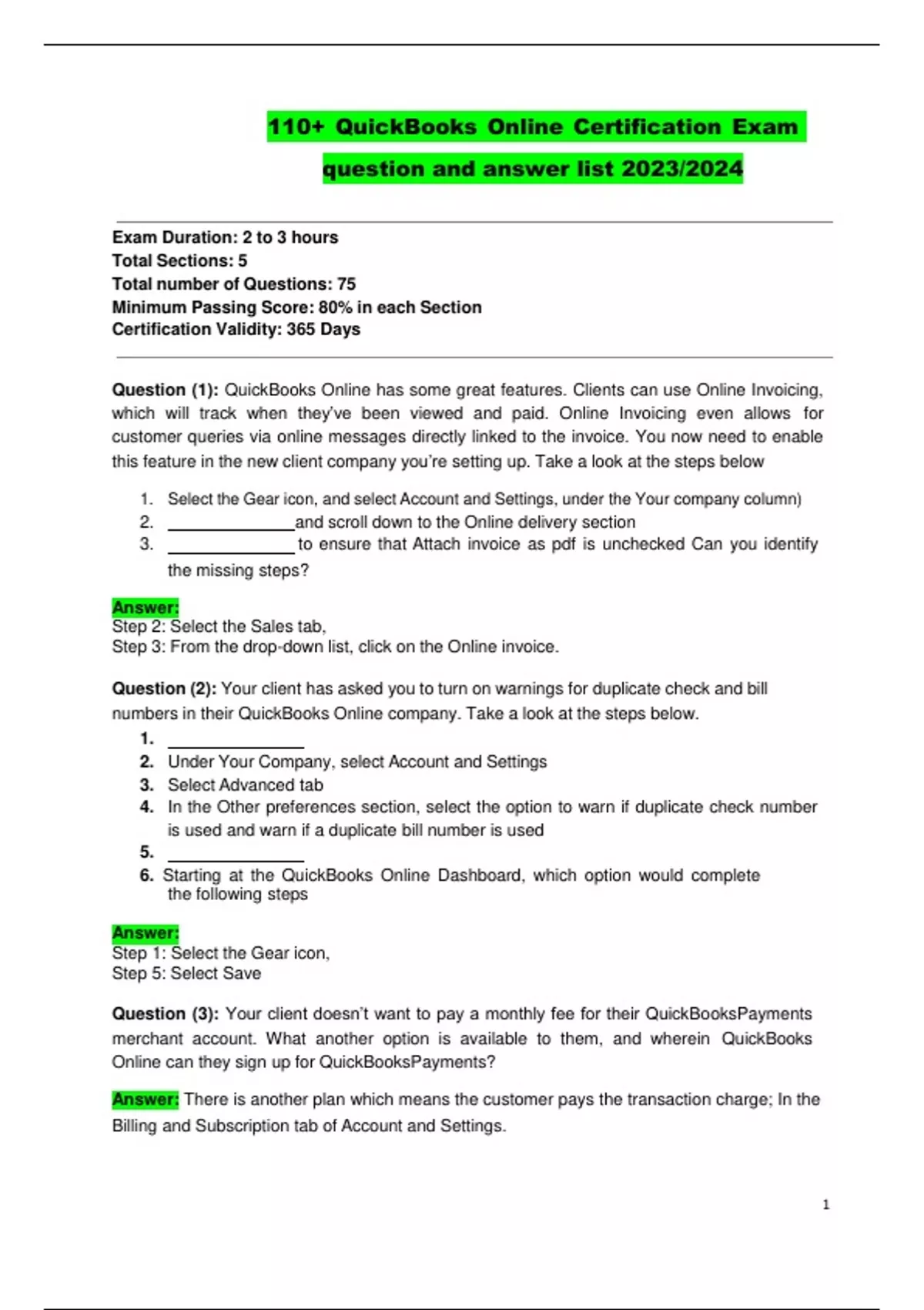 110+ QuickBooks Online Certification Exam question and answer list 2023/2024