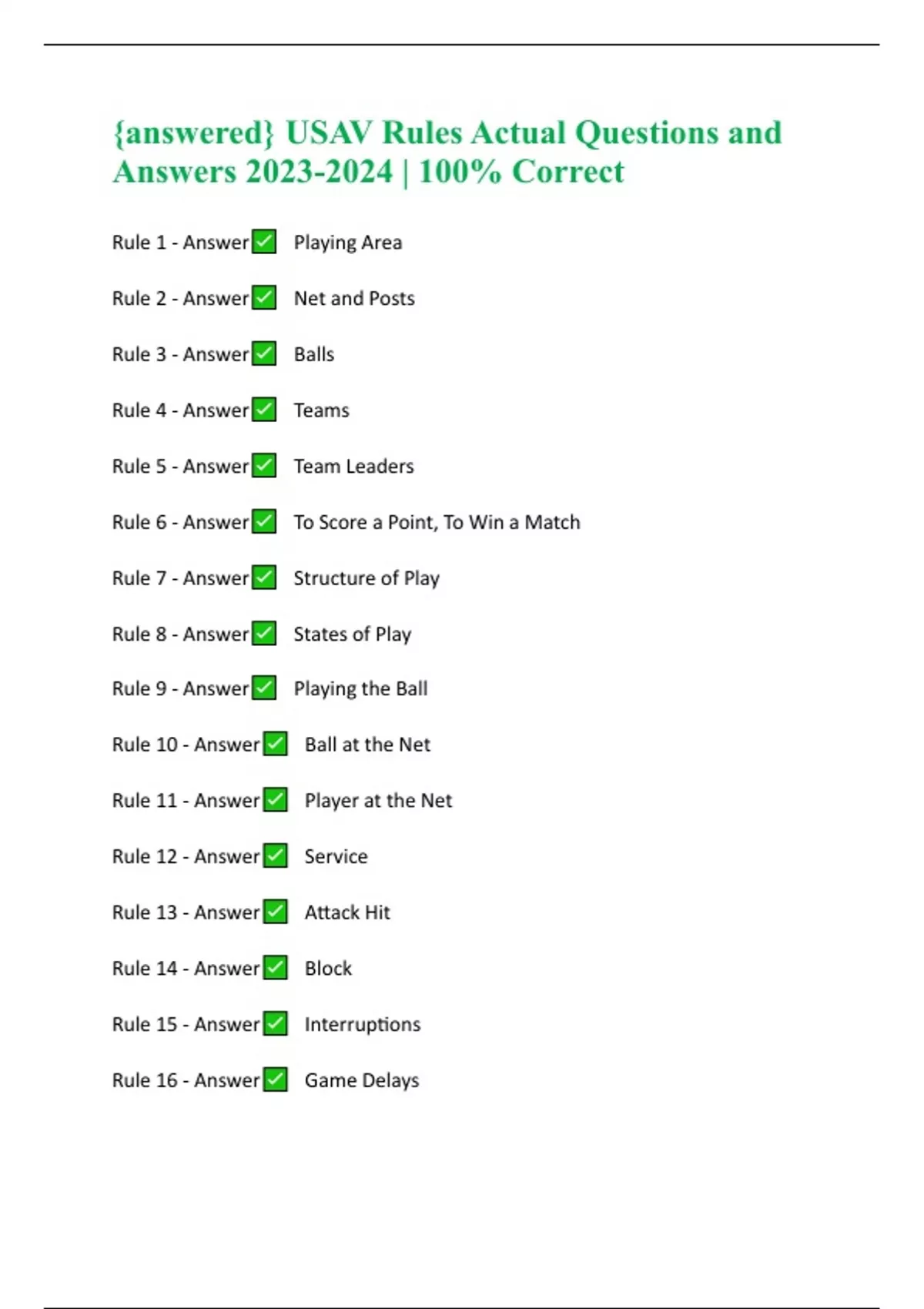 {answered} USAV Rules Actual Questions and Answers | 100% Correct
