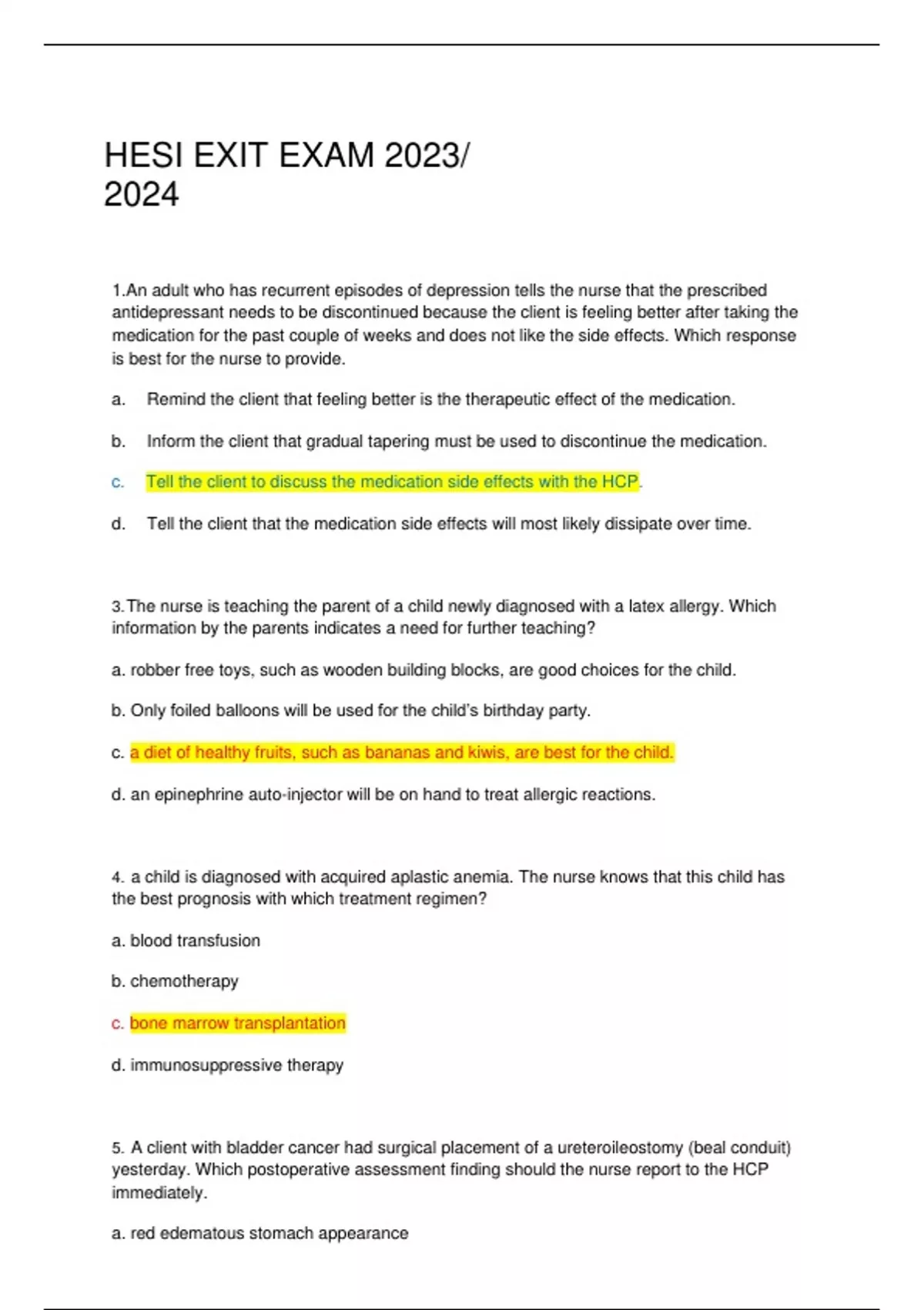 HESI Exit Exam 2023/ 2024 HESI Exit Exam 2023/ 2024 HESI Exit Exam 2023/ 2024