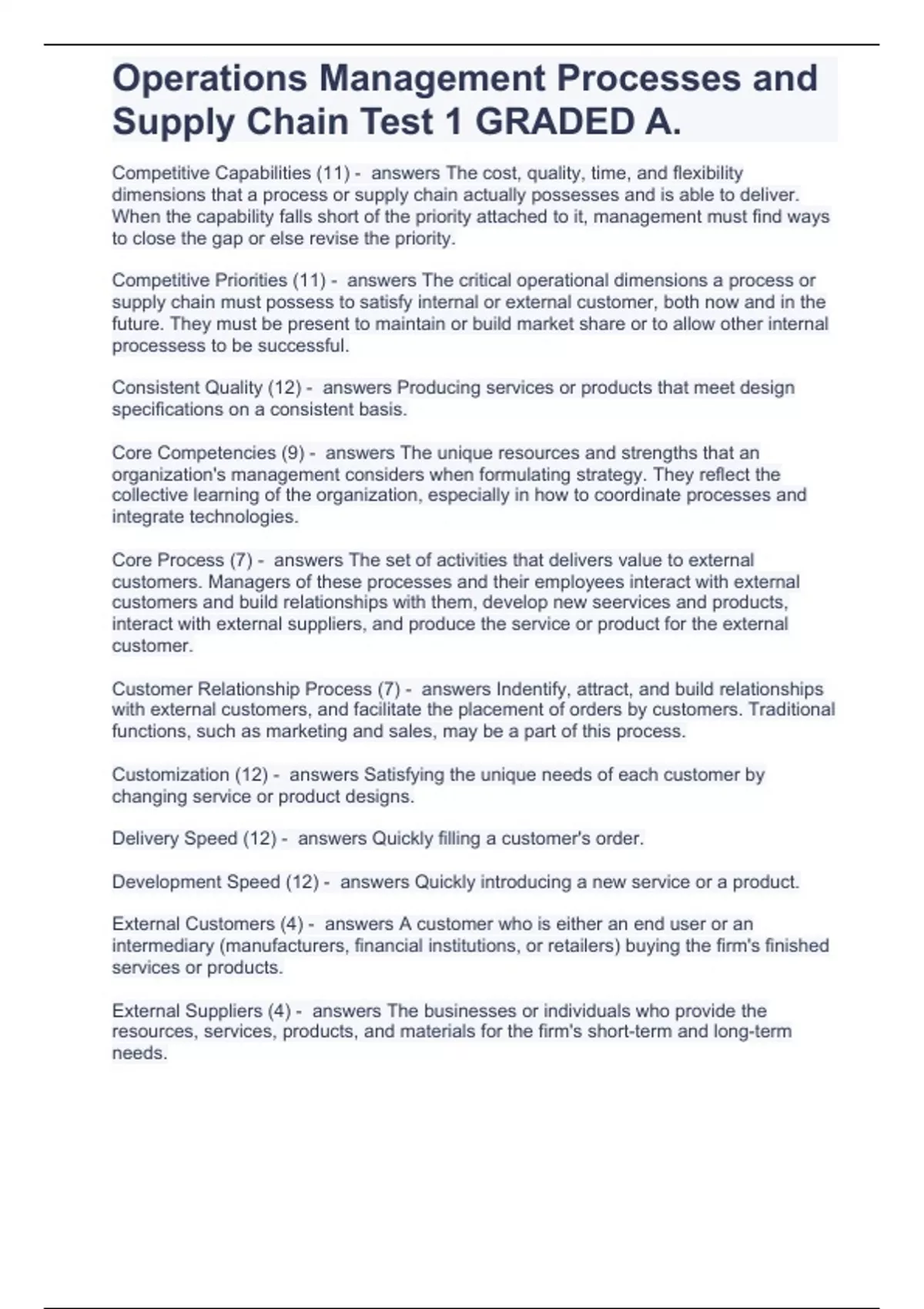 Operations Management Processes and Supply Chain Test 1 GRADED A.