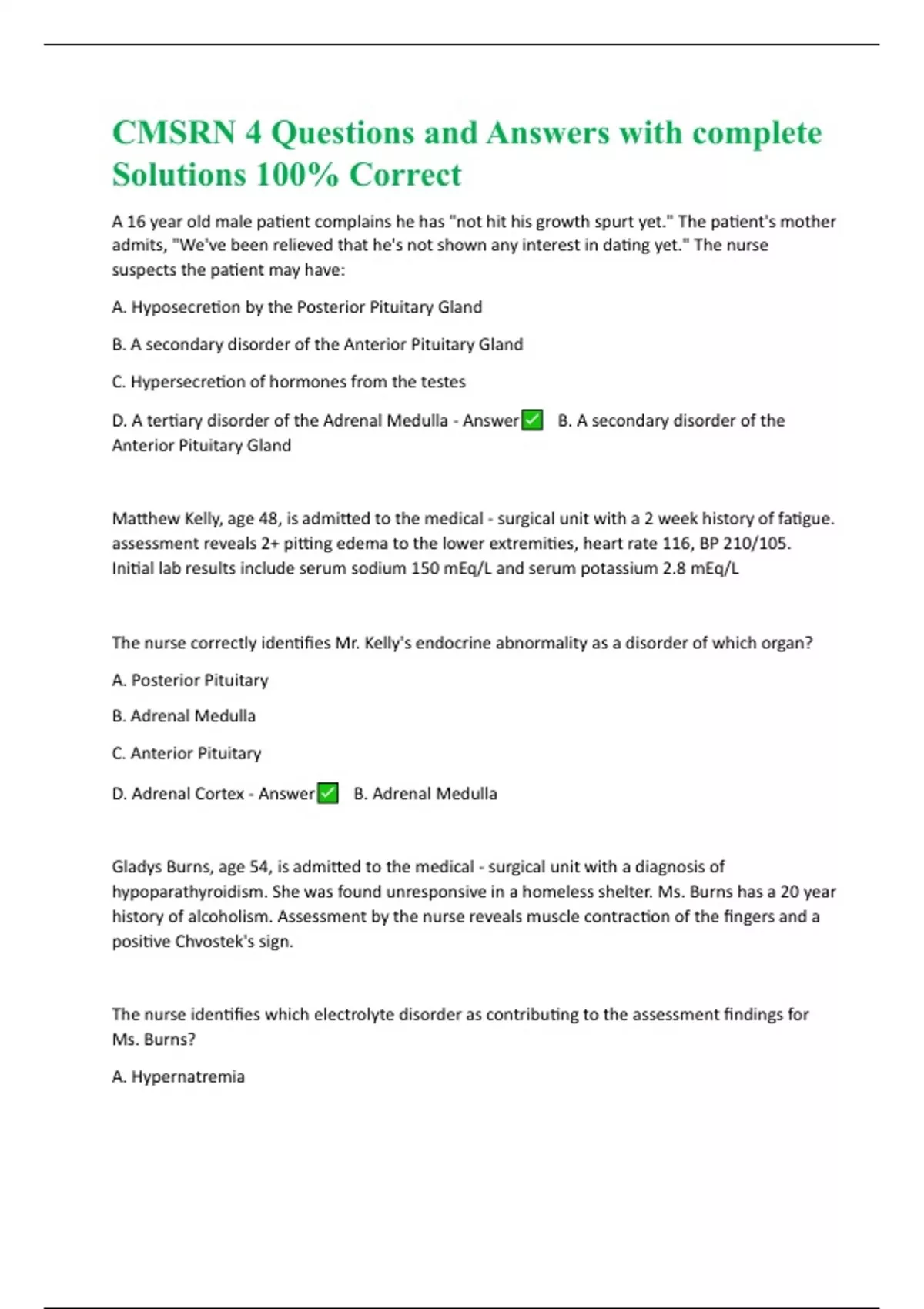 CMSRN Exam BUNDLED Actual Questions and Answers 100% Correct | UPDATED 2023-2024 | (WELL ILLUSTRATED)