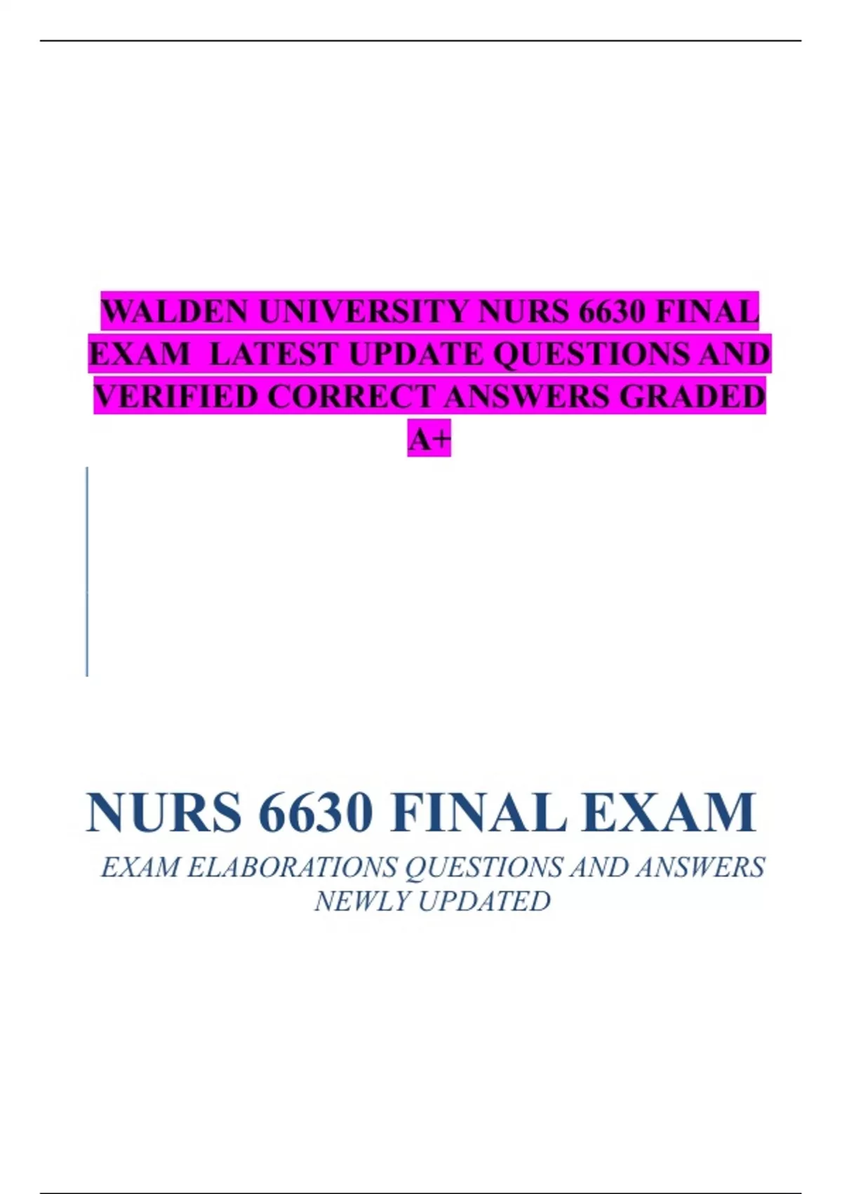 WALDEN UNIVERSITY NURS 6630 FINAL EXAM LATEST UPDATE QUESTIONS AND VERIFIED CORRECT ANSWERS GRADED A+