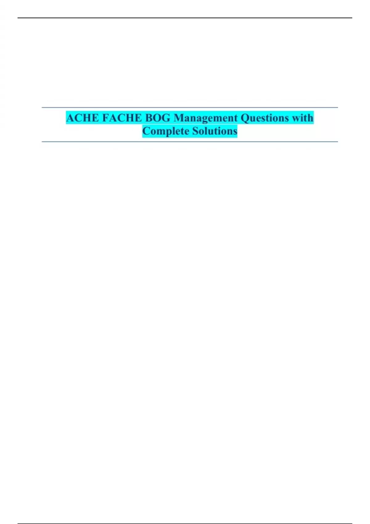 ACHE FACHE BOG Management Questions with Complete Solutions