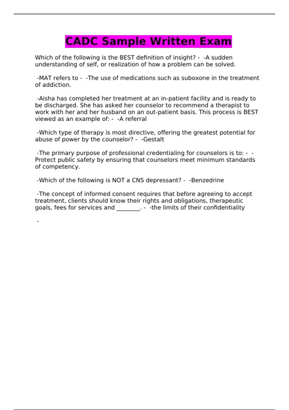 CADC Sample Written Exam