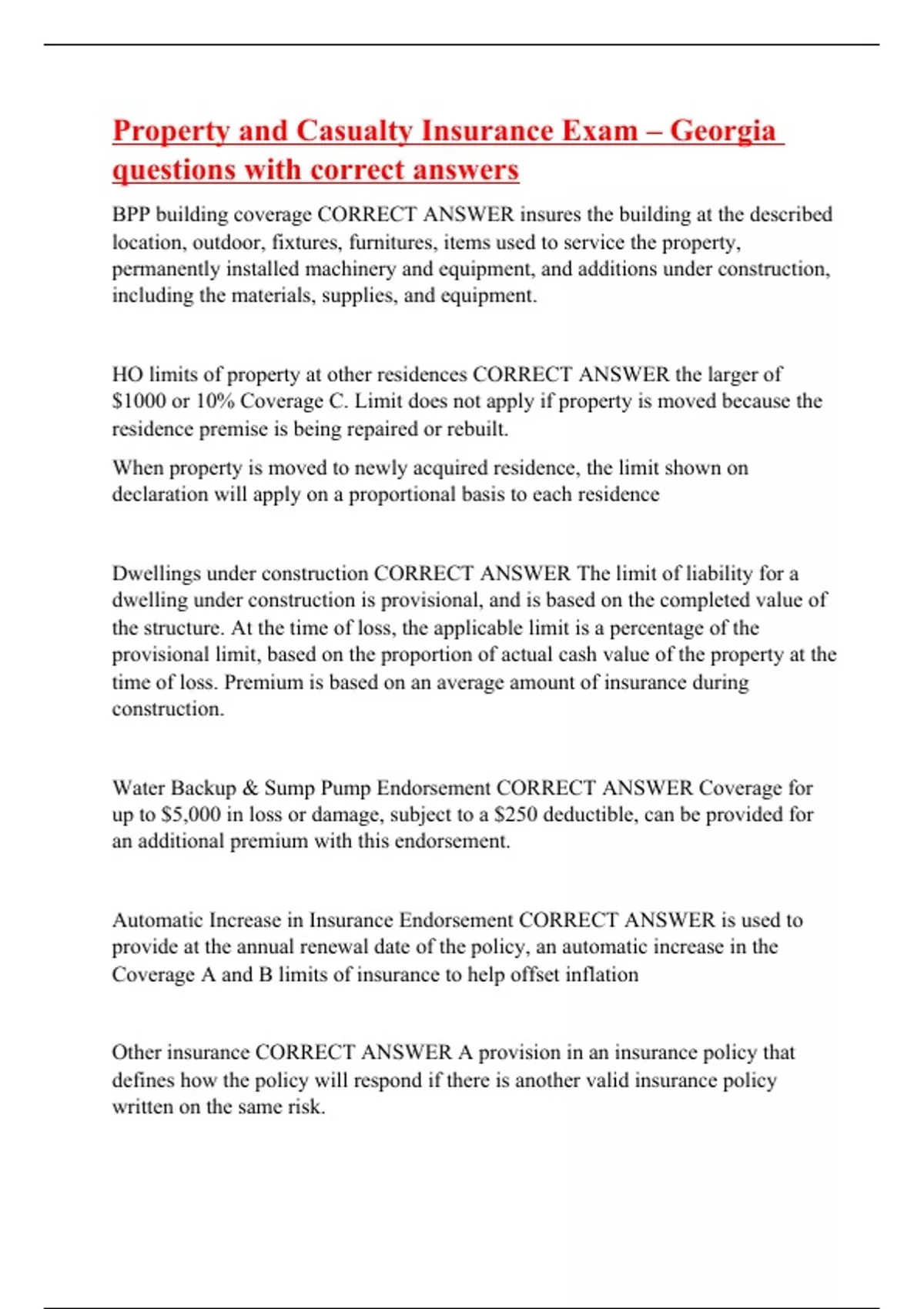 Property and Casualty Insurance Exam – Georgia questions with correct answers