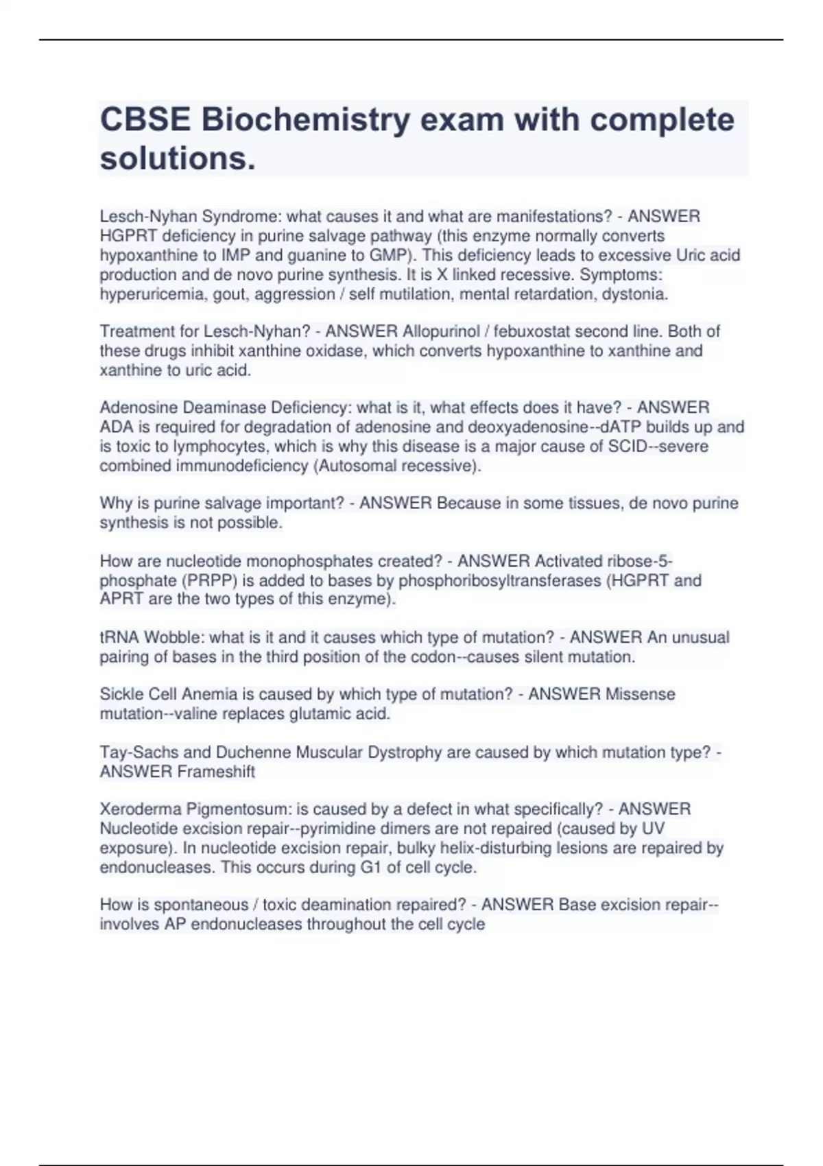 cbse biochemistry exam with complete solutions