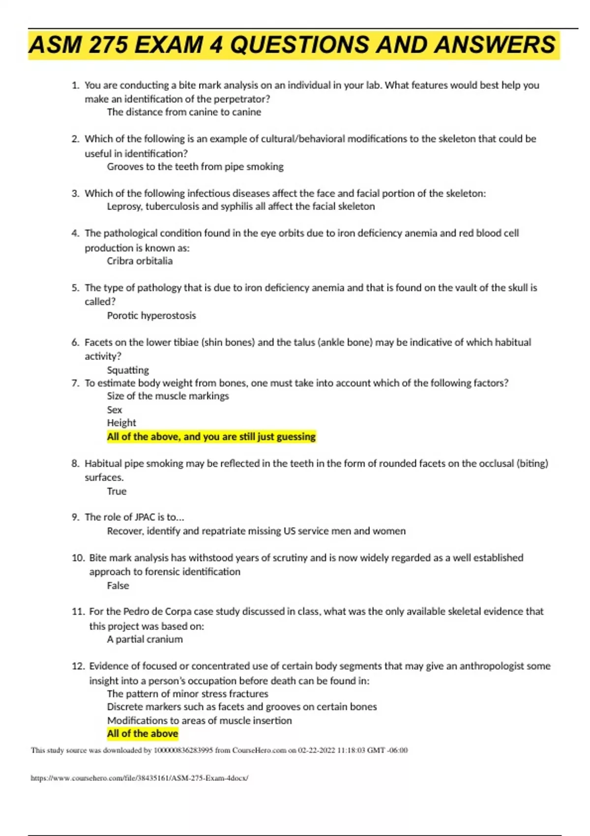 ASM275 / ASM 275 Exam 4 Questions and Answers