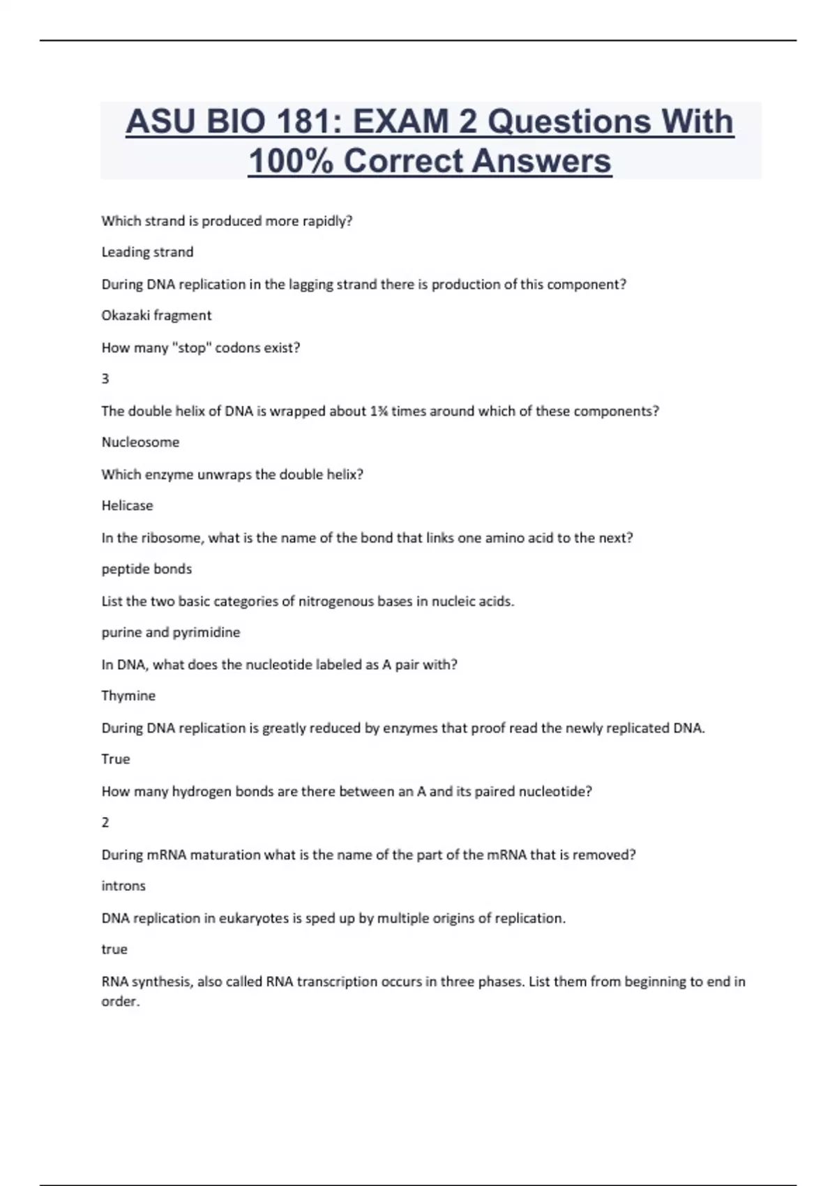 ASU BIO 181: EXAM 2 Questions With 100% Correct Answers