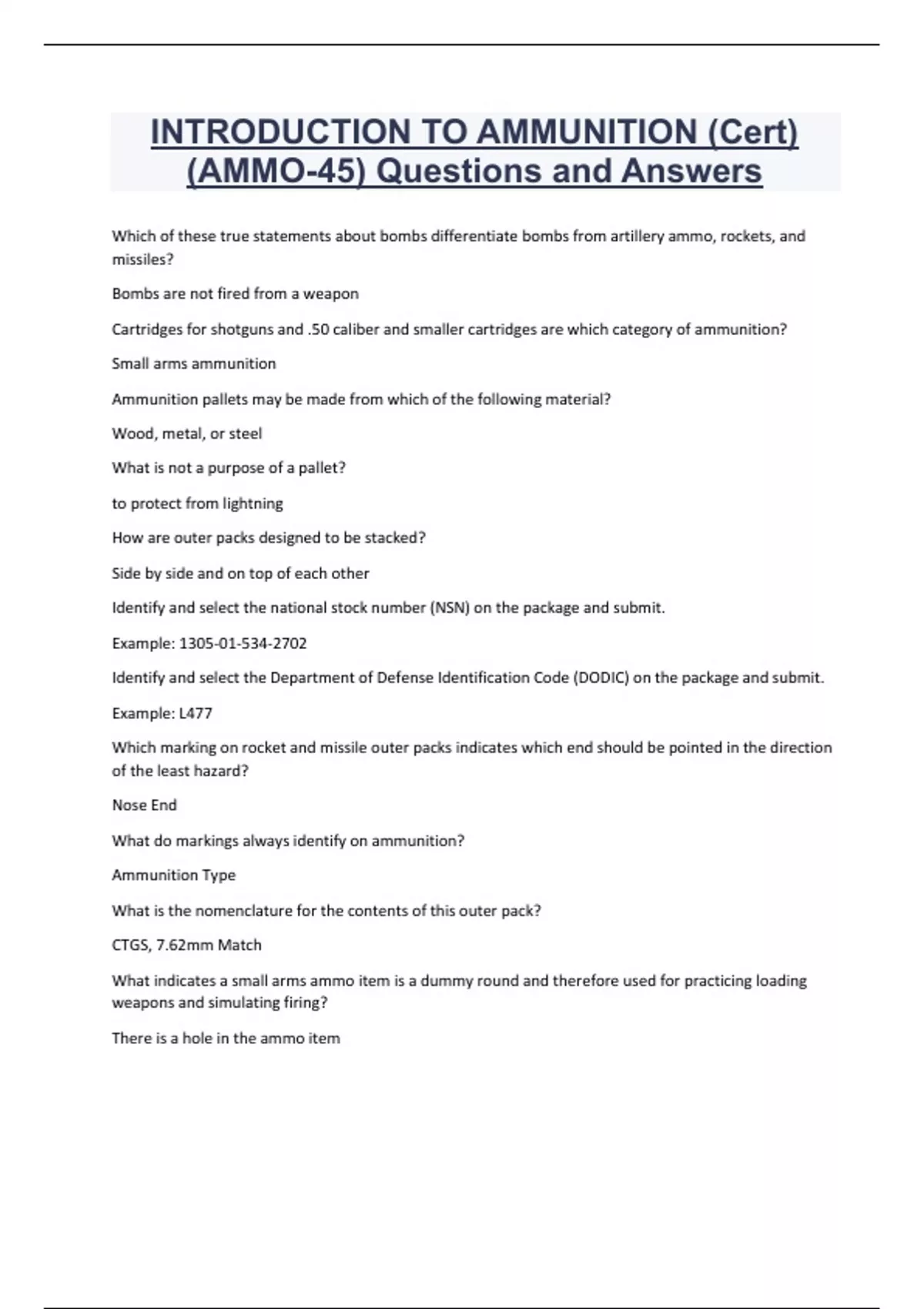 INTRODUCTION TO AMMUNITION (Cert) (AMMO-45) Questions and Answers